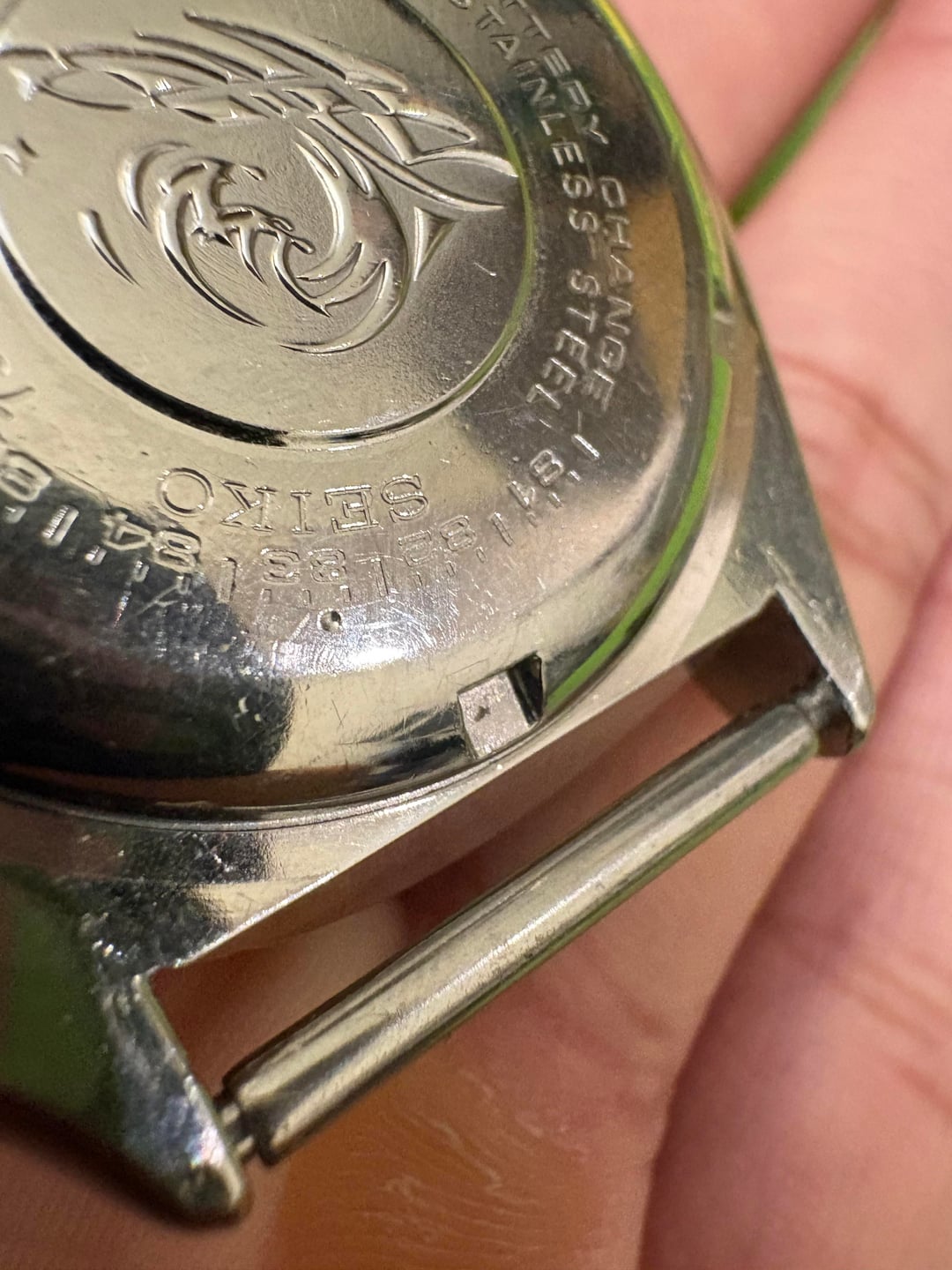 eBay find that was serviced and regulated prior to me buying with a new battery last year. I have a very good wabi sabi 7c43 that will replace this piece. There is some scratches all around the case and bezel. Bezel turns but I have not personally tried to pop it off or know how to make it spin smoother. It will come with a brand new **Crowne and Buckle Greige strap. I know that in service the minute, hour, and second hands were replaced and the dial seems OEM. The lume is only really present on the hands. 12 o’clock lume triangle plot seems to have a dent of some kind.