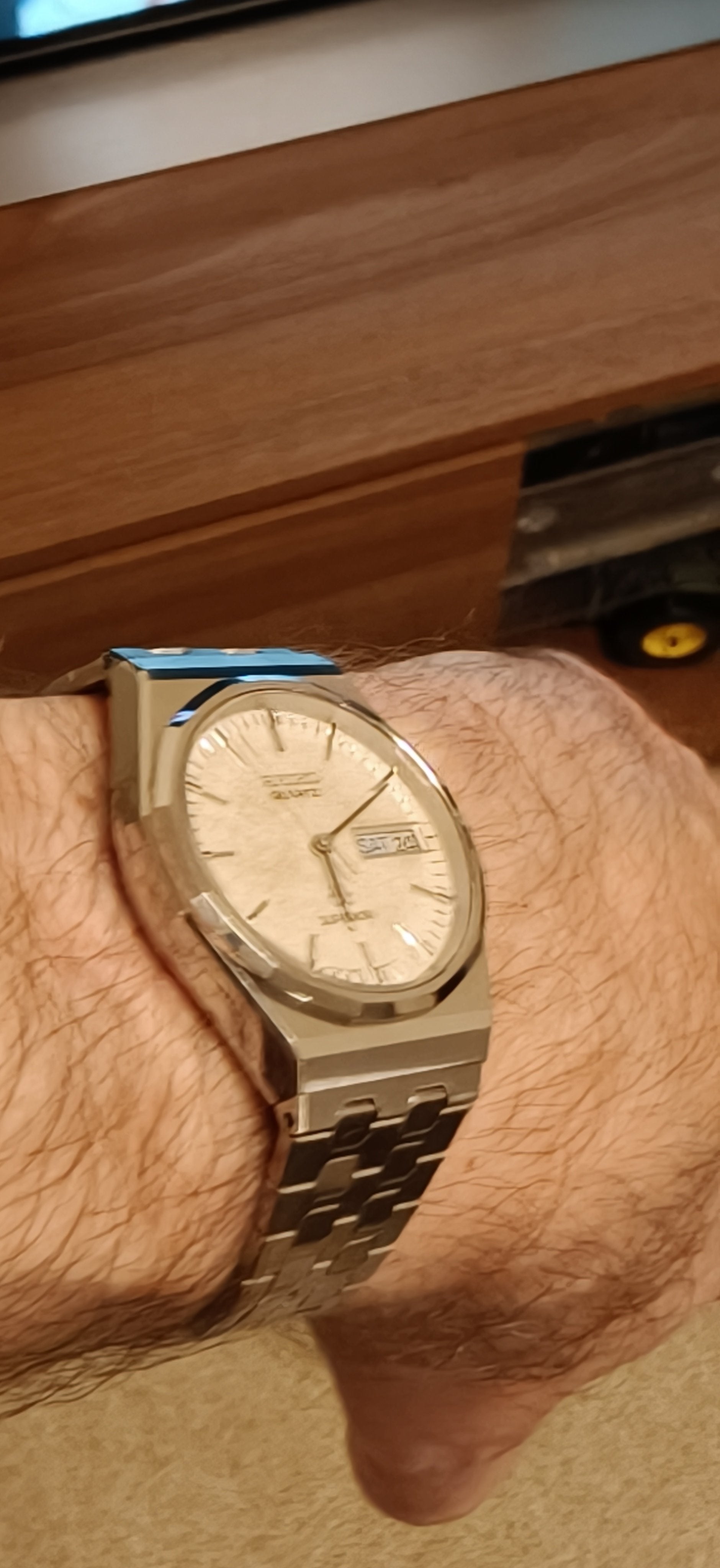 The finest of Quartz from Suwa Seikosha, rare to get one in this condition - fully overhauled, new gaskets, seals and a battery - extra link also available. Famous for the price tag they came with - with inflation these watches would cost over $4K nowadays.