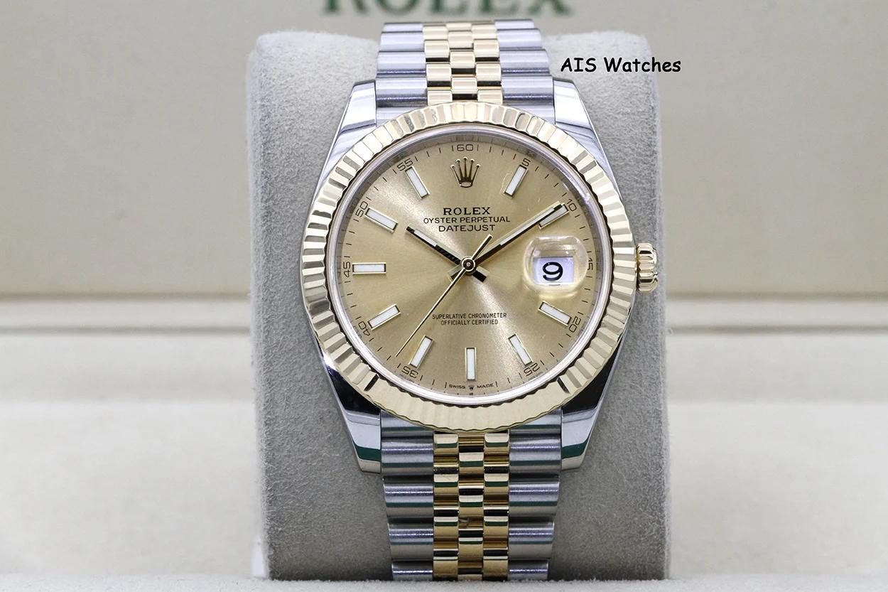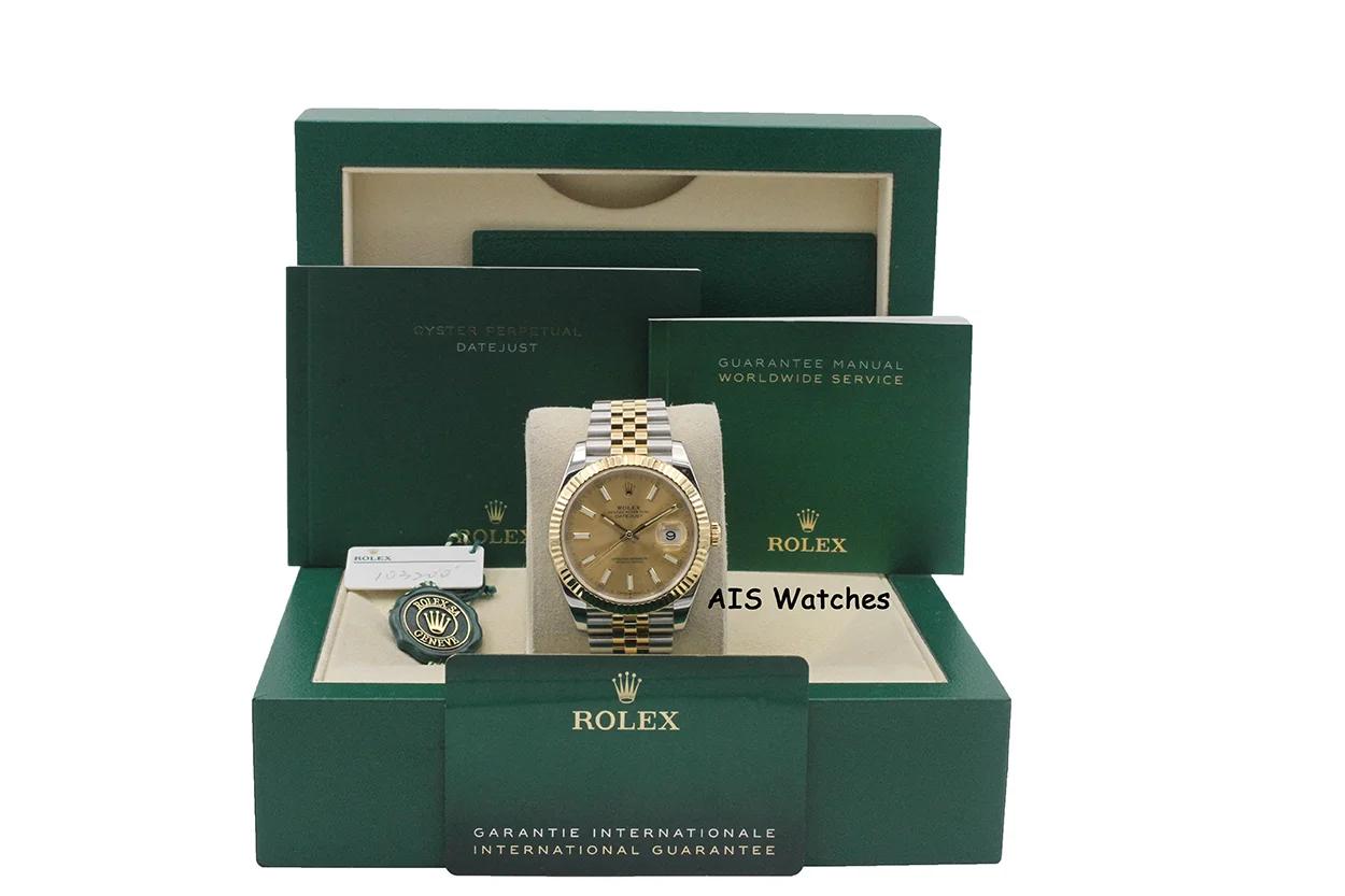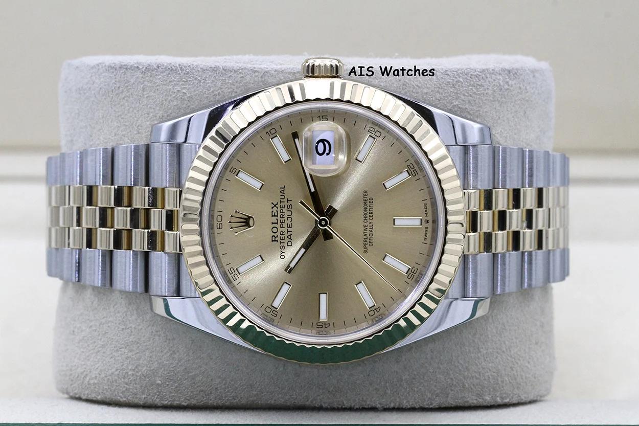 Vor 3 Monate | FSOT: Rolex 126333 DateJust 41MM 18K YG/SS Champagne Stick Dial Jubilee Bracelet B&P | $15.975 | |