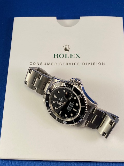AFTER GETTING IT BACK FROM THE ROLEX FACTORY SERVICE CENTER THIS WATCH HAS NEVER BEEN WORN AND HAS REMAINED UNUSED AND KEPT IN A ROLEX SHIPPING COFFIN.