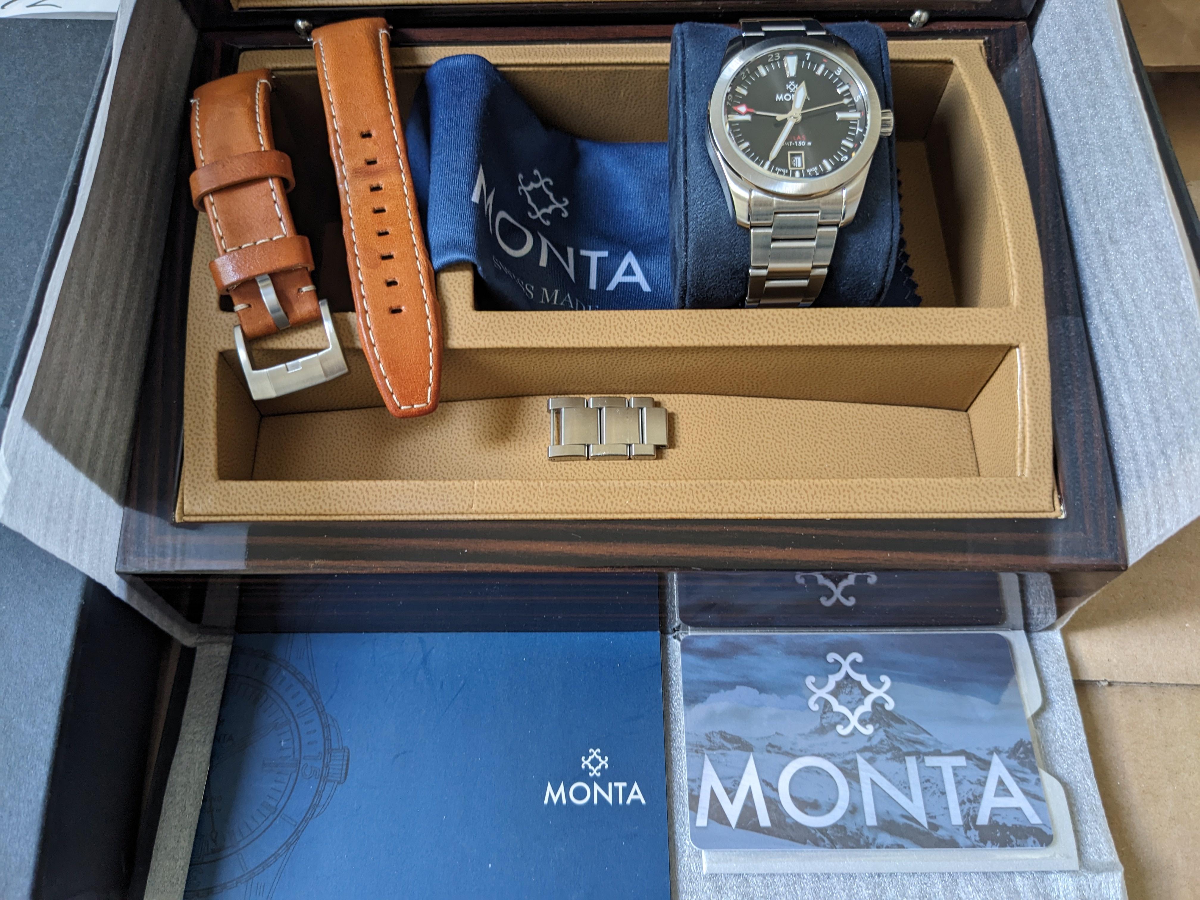 Comes as full set with latest version bracelet and fitted OEM Monta leather strap (from the same makers of the Everest rubber watch strap for Submariner), inner and outer box along with the warranty card 12/2019