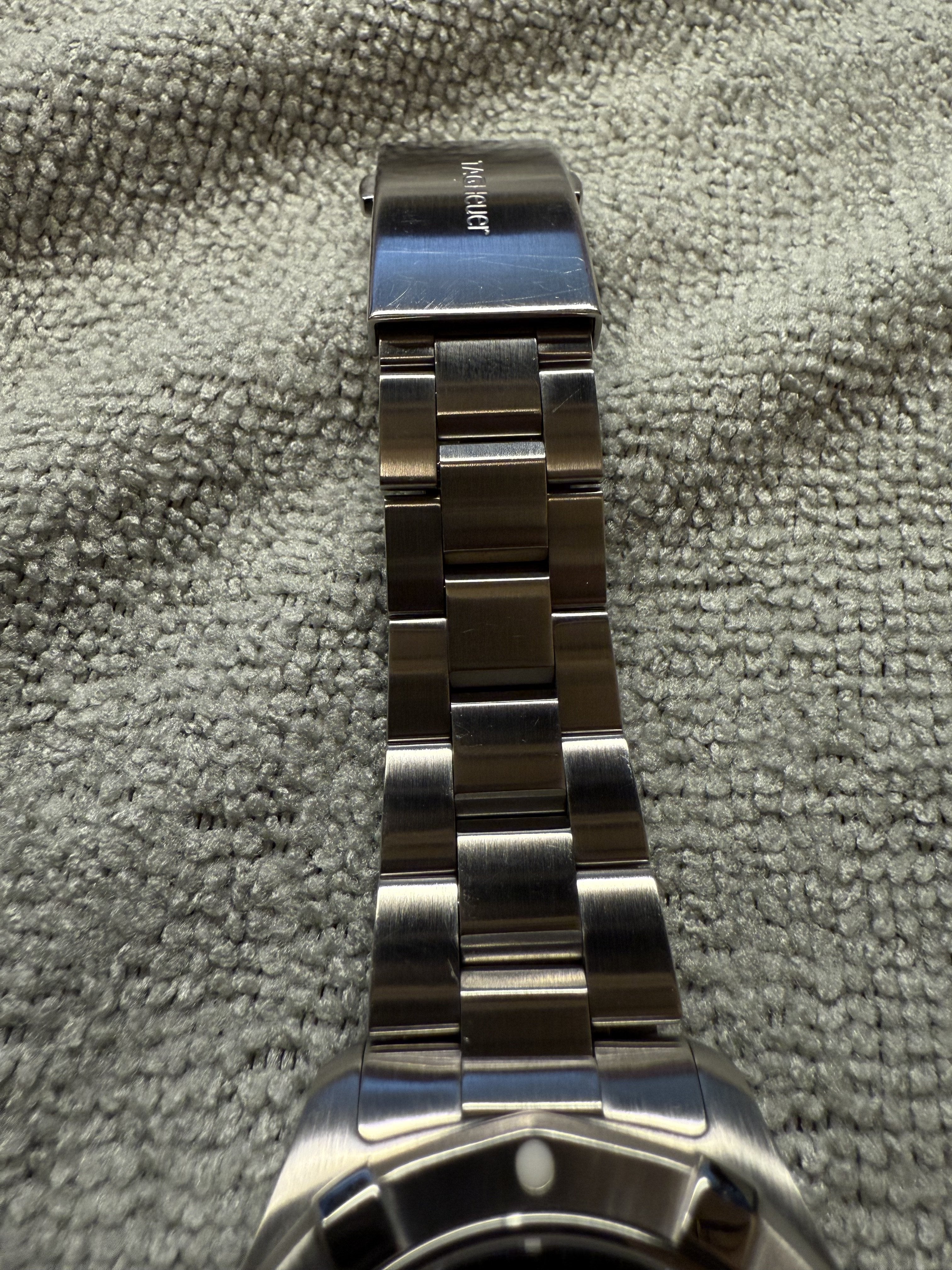 Beautiful 41mm solid stainless steel with black teak deck dial. They don’t make them like this anymore. Condition is excellent. Some wear on the clasp, very minor marks on bracelet. Absolutely no dents or dings. This thing is 15 years old, but can pass for a watch being worn for only 1 month. It’s that clean. Never been touched up or polished. It was stored away for many years many years. This thing runs like a top. COSC specs, about +2 seconds a day. beautiful deep engraved caseback(not like today’s cost cutting shallow engravings). This watch is the perfect GADA watch. Dress up or down. This watch is absolutely stunning in person. Sized to an inch wrist, comes with extra link. No trades thank you. USA only. I can provide any photo you want. Thanks