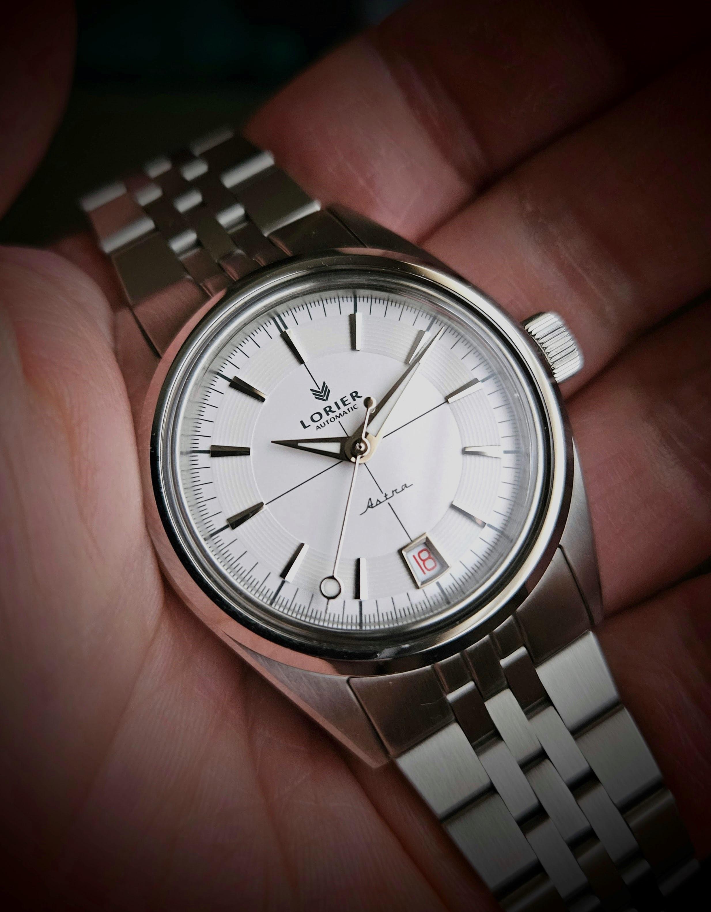 Hey Folks, Up for sale is the Astra, Lorier’s mid-century inspired gem. Design touches like the cross-hatch, roulette date wheel, and ingenious lume track highlight Lorier’s design chops. As seen in the photos, it’s still in solid condition, with some marks on the case and back of the lugs. Package includes the Lorier travel pouch, extra links, a Polywatch tube, and a green leather strap. An additional triple watch Watchpod is included in lieu of the Lorier box. Asking for $390 (Zelle only), which includes insured shipping within CONUS. Trades considered for the Astra plus a steel bezel Halios Fairwind for your diver around $1,200. Have a great day! * Album: [https://imgur.com/a/8MSuQp2](https://imgur.com/a/8MSuQp2) * Timestamp: [https://imgur.com/Sfp7RhU](https://imgur.com/Sfp7RhU) Specs: * Miyota 9015 automatic movement, 28800 bph (roulette datewheel) * 316L marine-grade stainless steel case * Water resistant to 100 meters / 330 feet * Screw-down crown * Dome Hesalite crystal * Superluminova BGW9 luminous