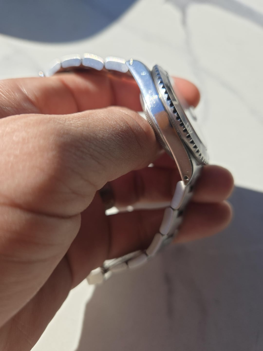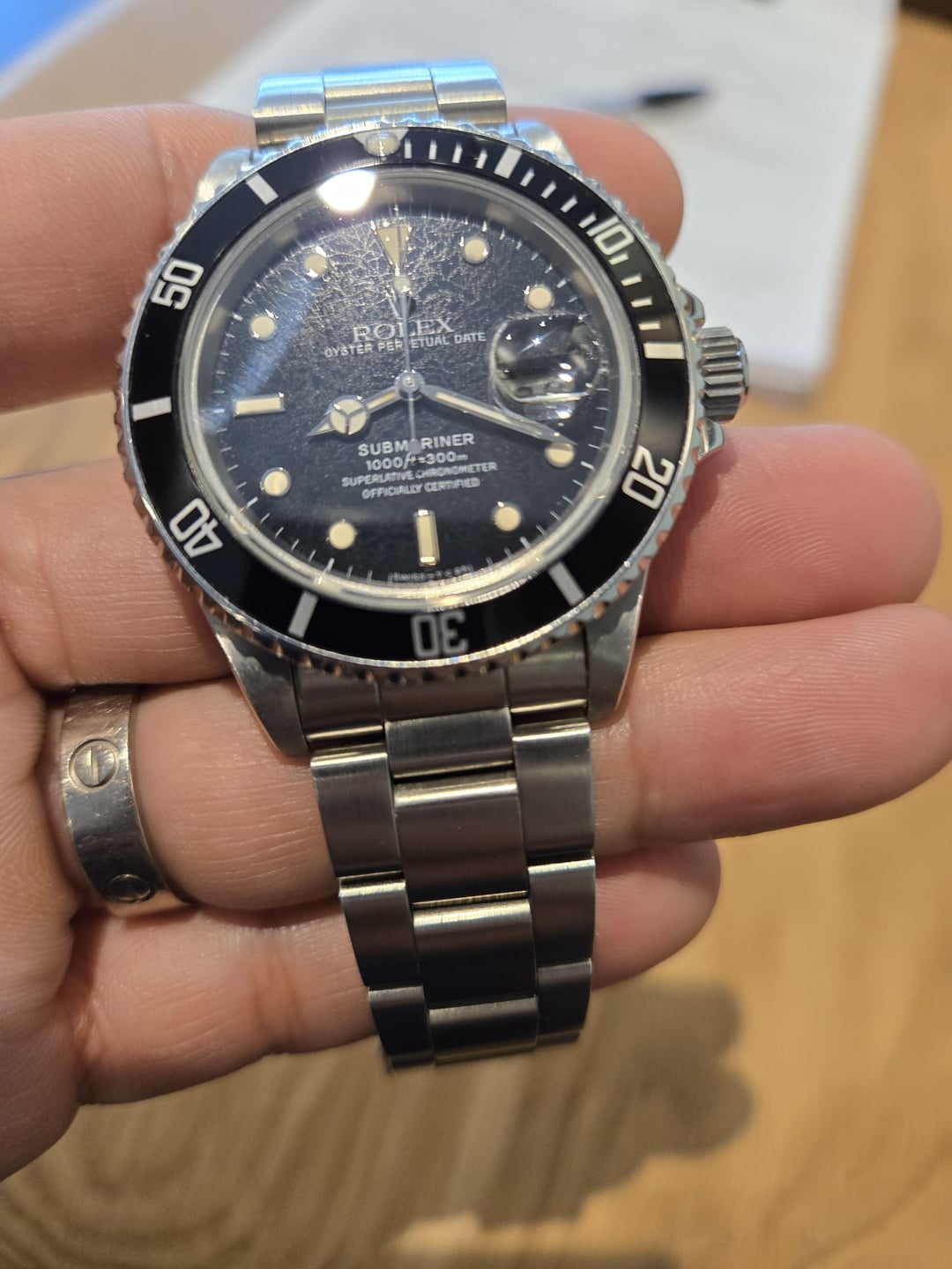 Hello! For sale is a rolex sub 16800 serial dating 1987. The watch was purchased from a famous dealer is Japan and comes with their papers / certification. The dial laquer is showing fine lines and is considered a frozen dial, slightly different from a spider dial. Looks super cool when the sun hits No known service history but timekeeping is spot on and seems the lugs are nice and thick possibly light polished in the past. The dial markers, hands, and bezel pips have matching patina. Perfect daily wear. It comes with 11 links. Price : $8,500 Payment : Wire, zelle, or paypal + fees on buyer. Shipping : Fedex next day