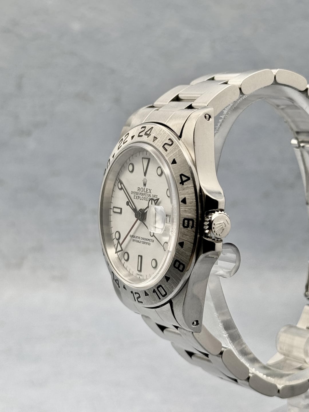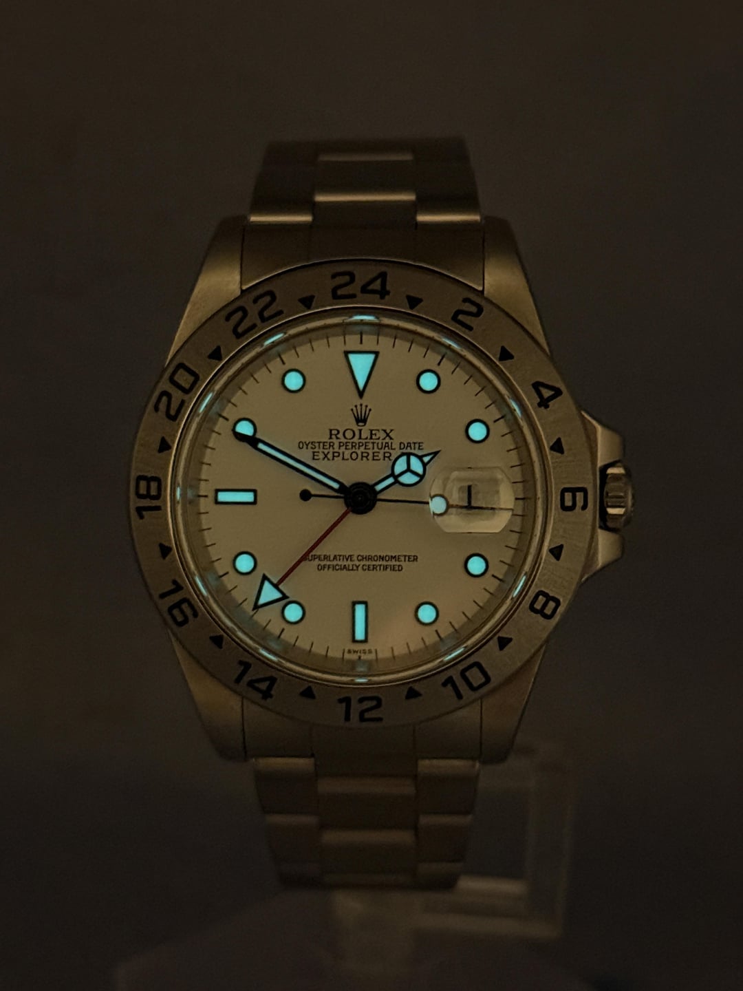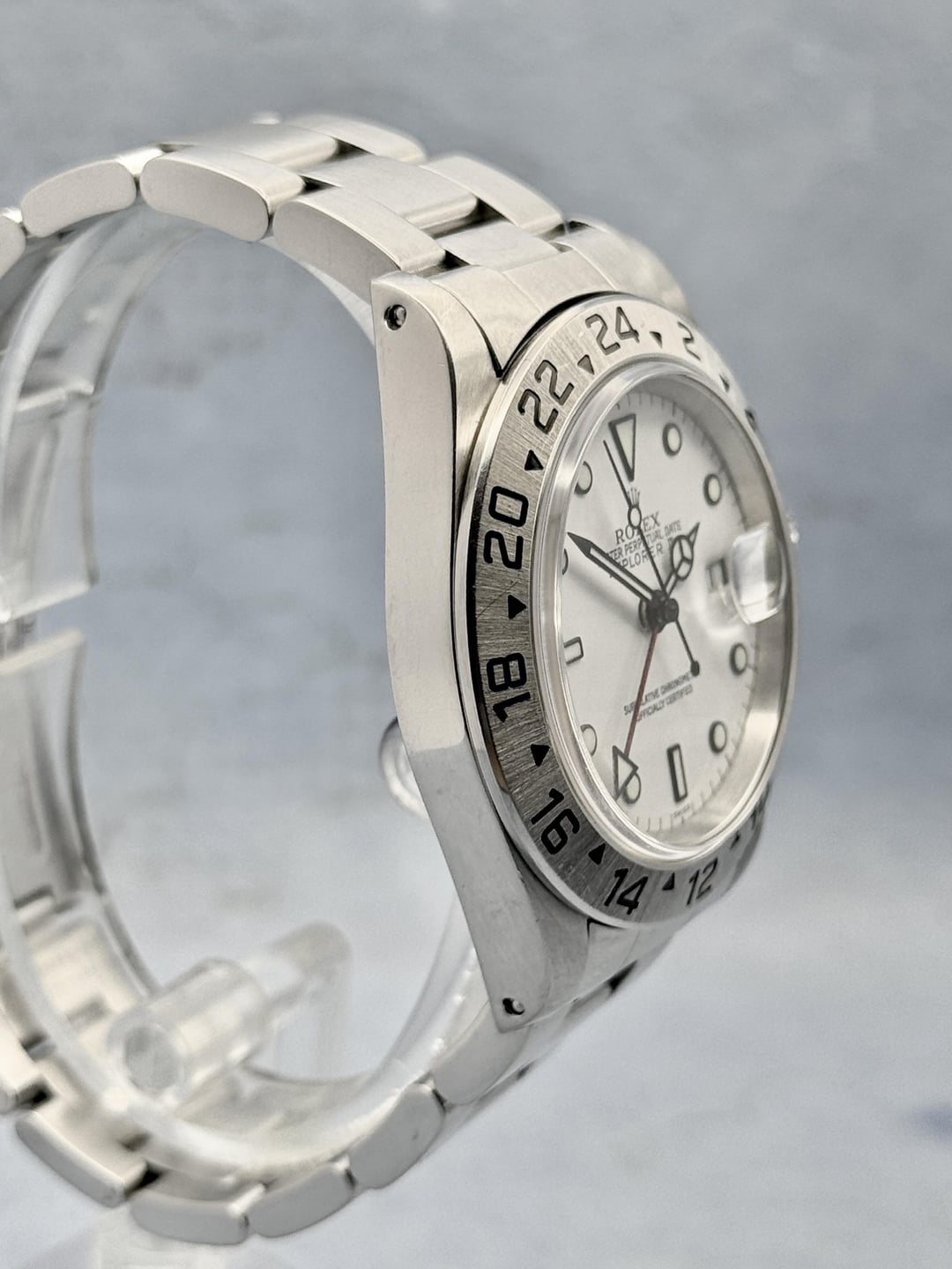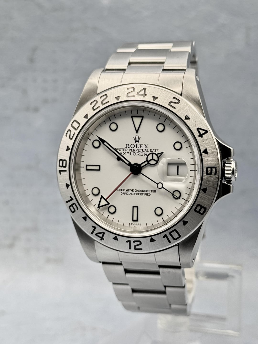 **\[WTS\] Rolex Explorer II "Polar" - 16570 - 1999 - FULL SET & SERVICED** [MORE PICS](https://www.grailtimeco.com/rolex-explorer-ii-16570-polar-1999/) [TIMESTAMP](https://imgur.com/cZwvuLv) [TIMEGRAPHER STATS](https://imgur.com/28HqUHe) [INSTAGRAM](https://instagram.com/grailtimeco) **As Crisp as Polar Snow** The ever popular Rolex Explorer II offers a stainless steel finish paired with a striking "Polar" white dial. The luminova hour markers and hands provide easy reading, while the fixed bezel engraved with 24-hour graduations and the GMT complications allows the wearer to keep track of two time zones. Model features the sought after "Swiss Only" luminova dial, made from late 98 to early 2000. This 1999 Explorer II is in very good all round condition. The bracelet is tight, the case is sharp and crown on the bracelet well defined - all signs of light wear. It has received a full movement service and is running and winding like a new watch. Pressure test included. Watch has not been polished as part of the service as the condition does not justify it. Some light surface scratches on bracelet that can be polished for you at a small cost. Watch comes as a full set with warranty papers, original serial number swing tag, inner and outer boxes and booklets. Bracelet fits upto a 7 1/2 inch wrist. **E-Mail or Call for purchase details.** **$7,950** shipped Fedex next day, fully insured, to the USA or arrange pick up from Hoboken, NJ. Can ship internationally if you provide the label. Wire payment, zelle or paypal friends and family. Please feel free to contact via Reddit DM with any questions. As per sub rule, please comment “PM” before sending a PM or DM. Thanks Plenty of references available from Reddit Watch Exchange and Rolex Forums and on my Website.