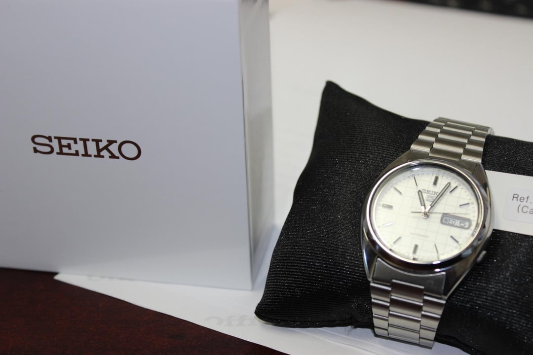 Selling my Seiko 5 grid dial Ref SNXF05K. Originally bought from Jomashop in November of 2024, I don't wear it and would like to partially fund a PRX powermatic 80. This is a fantastic starter watch and Seiko's last generation introductory automatic. Includes box and label received from Jomashop. I am asking 99 shipped via FedEx. Thank you!