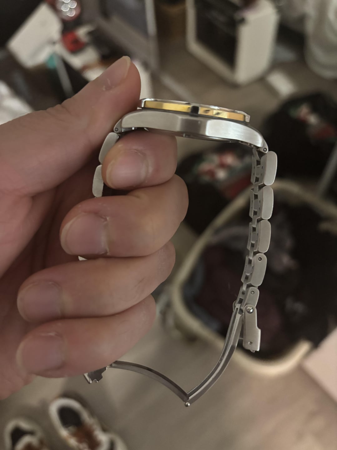 Hey everyone, for sale today is my beloved 18kt gold bimetallic tag. It is in amazing condition, considering it being 25 years old now… and, it runs like clock-work. There are very minimal scratches on it, and the bracelet fits up to a 7.5in wrist. This thing has served me well, I’ve practically baby’d it for as long as I’ve had it. And, it will serve you well too! No trades at the moment, somewhat firm on the price. But, just get into contact with me. I’m asking 600$ even for this piece. Have a good day.