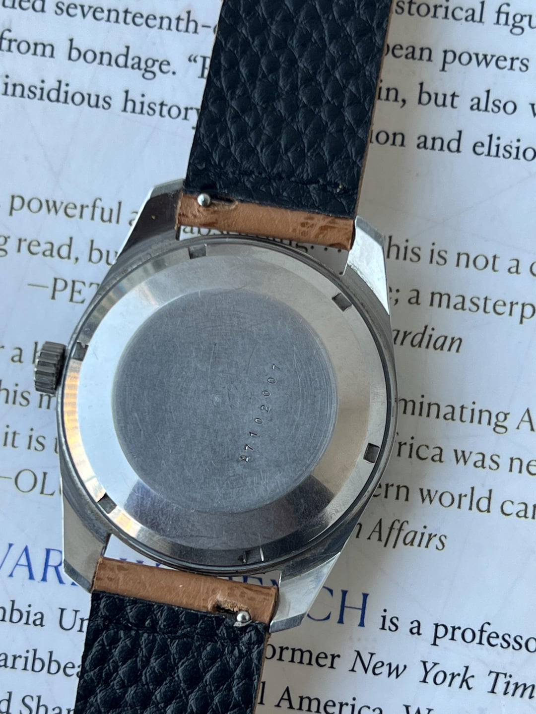 Timestamp: https://imgur.com/a/7gAf7fV On sale for the discerning collector, the Vintage Shanghai 114 Diver SS4 Chinese Military Issued Watch is one of rare example from Chinese military issued watches. This timepiece features a stark black dial with radium markings and hands, complemented by a complementary brown leather band. The 37mm stainless steel case with a screw-back design houses a reliable mechanical (automatic) movement with 24 jewels, ensuring precision and durability. With its origins dating back to the period between 1965 and 1975, this is true vintage collector item and additionally the connection with Chinese military makes it more desirable. The watch retains its original box that is small size because they were coming without strap and head only was packed in small box. adding to its authenticity, and displays an analog layout with a black bezel and a 19mm band width. Despite its military heritage, this piece stands strong with design to even modern day styles. Product is Exactly as seen in pictures • 37-38mm case • birotational bezel smooth • Black dial with some ageing as shown. Some radium marks on dial from hands. • Tan leather/faux leather strap. Buckle is plain steel. • Automatic movement running good. Within 20-25 seconds in 24h. There is little bit of wiggle in dial/mvt when crown is unscrewed. • signs of storage/usage. Scratches on case here and there. Some edges/lugs have small dents. • Visible scratches on glass too. If you have any questions or concerns please don’t hesitate to contact. 995 shipped. EBay/ PayPal GS extra charges. Good day.
