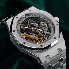 Up for sale is Audemars Piguet Royal Oak Double Balance Wheel Openworked in White Gold. Set with a stunning 32 baguette-cut diamond bezel, this piece features an openworked dial that reveals the double balance wheel. This open design unites innovation and practicality, giving the wearer an immersive view of its inner mechanics. Presents itself in mint condition with little signs of wear. Features a white gold case with its brushed finish gives the watch a solid presence on the wrist. The beautiful exhibition caseback offers a clear view of the intricate mechanical movement. Functions include hours, minutes, and seconds. The minute hand can be adjusted using the screw-down crown on the right side of the watch. It also features luminous hour markers and white gold applied hands for enhanced readability in low-light conditions. Comes as a full set, double-boxed, including the watch pillow, an AP folio with warranty card, warranty booklet and instructions booklet. Professionals and executives with an eye for luxury will be drawn to the diamond-set bezel and the exquisite movement of the dial as an indication of achievement. The double balance wheel mechanism and openworked design make it a highly desirable piece for those who appreciate not only its captivating beauty but also the technical mastery. With every detail, this watch sets a new standard for what a timepiece can achieve. Please excuse any dust, fur, reflections, or any other hard-to-avoid elements in the photos. We can take additional photos or videos upon request. Price: $319,000.00 shipped overnight fully insured with signature required to your nearest FedEx Office for hold/pick up. [TIMESTAMP](https://imgur.com/iSDGvcl) [PICS](https://imgur.com/a/pfHGJnW) Call/Txt: 626-699-3488 Email: [[email protected]](mailto:[email protected]) Looking for this watch on a different strap or a very similar variation of this watch? Send us a message and ask us! We are stocked with straps/bracelets and get new inventory everyday! How have we achieved 5 Star Ratings and 100% Feedback across all platforms? Experience the Majestix Difference: We will give you a video tour of the watch over a live video call or we can record one for you. This ensures that we have the watch in hand, ready to ship. We video record the packing process for every watch that we ship so you know exactly what to expect when you open your package. Also because insurance requires the video recording in case anything happens to the package and they need to pay out for missing / stolen packages. We send you the video recording so you know exactly what to expect when you receive the package. Check our reviews and/or ask for references regarding our quick and excellent service. High value timepieces shouldn't be shipped any slower than priority overnight. We ship priority over night via FedEx. Every package is fully insured with signature required to a FedEx Office of your choice within the continental USA. International shipping may be available depending on which timepiece you buy and which country you want it shipped to. Different countries have different maximum insurance values. Please message to be sure we can ship to your international location (insurance only covers to specific countries). We are always open to trades. Message us with possible trade-ins!