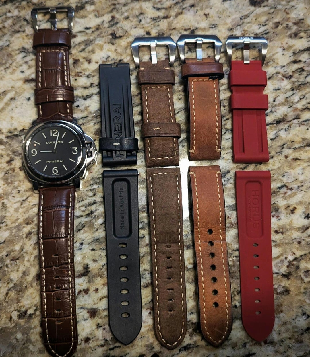 Selling my Panerai Luminor PAM 112. It comes with 2 OEM straps (black rubber and brown gator) , the OEM buckle and 3 aftermarket straps. This is the manual wind 44mm reference with the beautiful open case back and comes as watch and straps only. Watch is in good condition with wear from normal use.Can be worn as is as a daily or polished to look very nice. There are 2 very minor dust specks underneath the crystal, not very noticeable during everyday use but highlighted in the pics for reference. A watchmaker would be able to remove these. The watch pairs exceptionally well with the gator and soft brown leather straps and is a great piece to wear casually or on semi formal ocassions. Pick up the quintessential Panerai Luminor with several extra straps at a bargain price of $2,350 OBO plus insured shipping. Timestamp is below- https://imgur.com/pXoExB0 Happy to get on a video call to show the watch and share references both here and externally as needed.