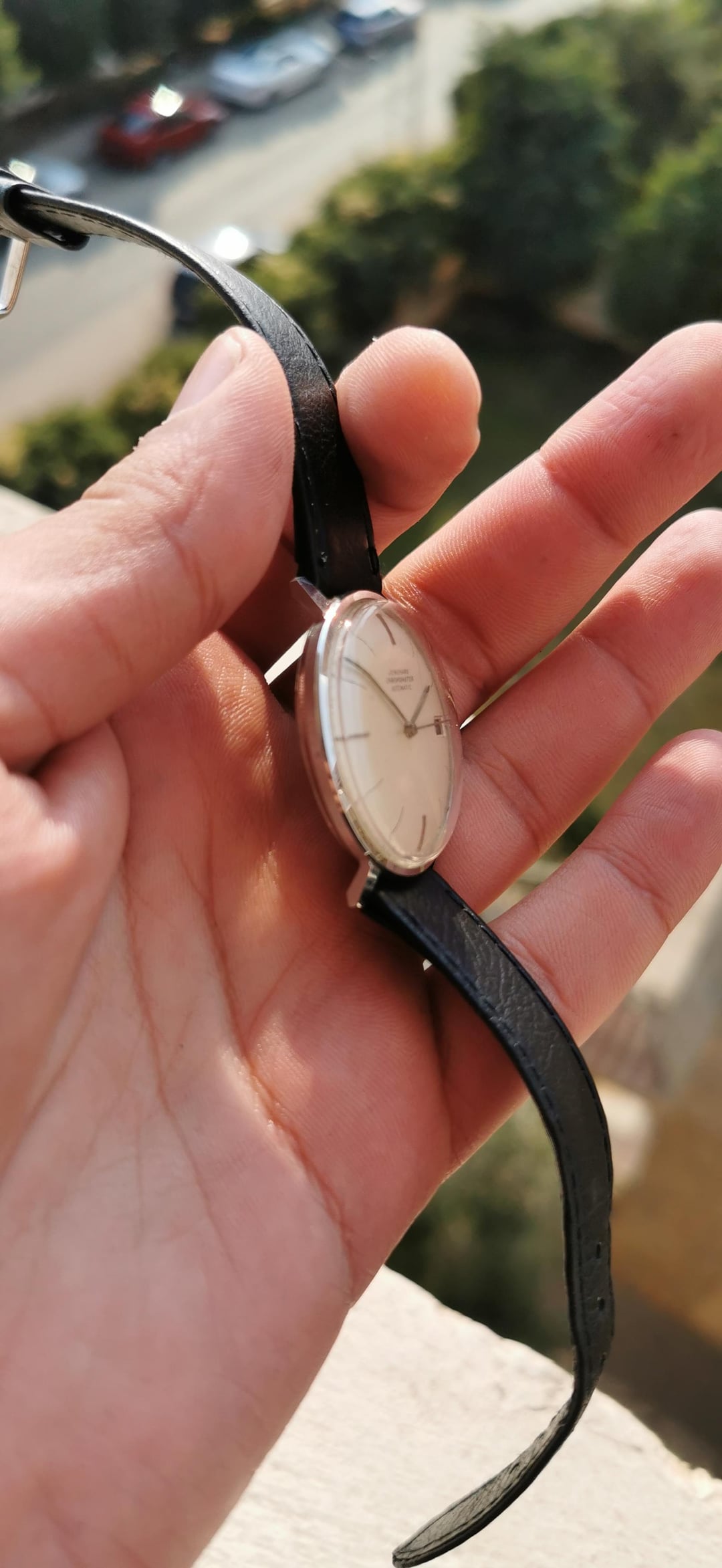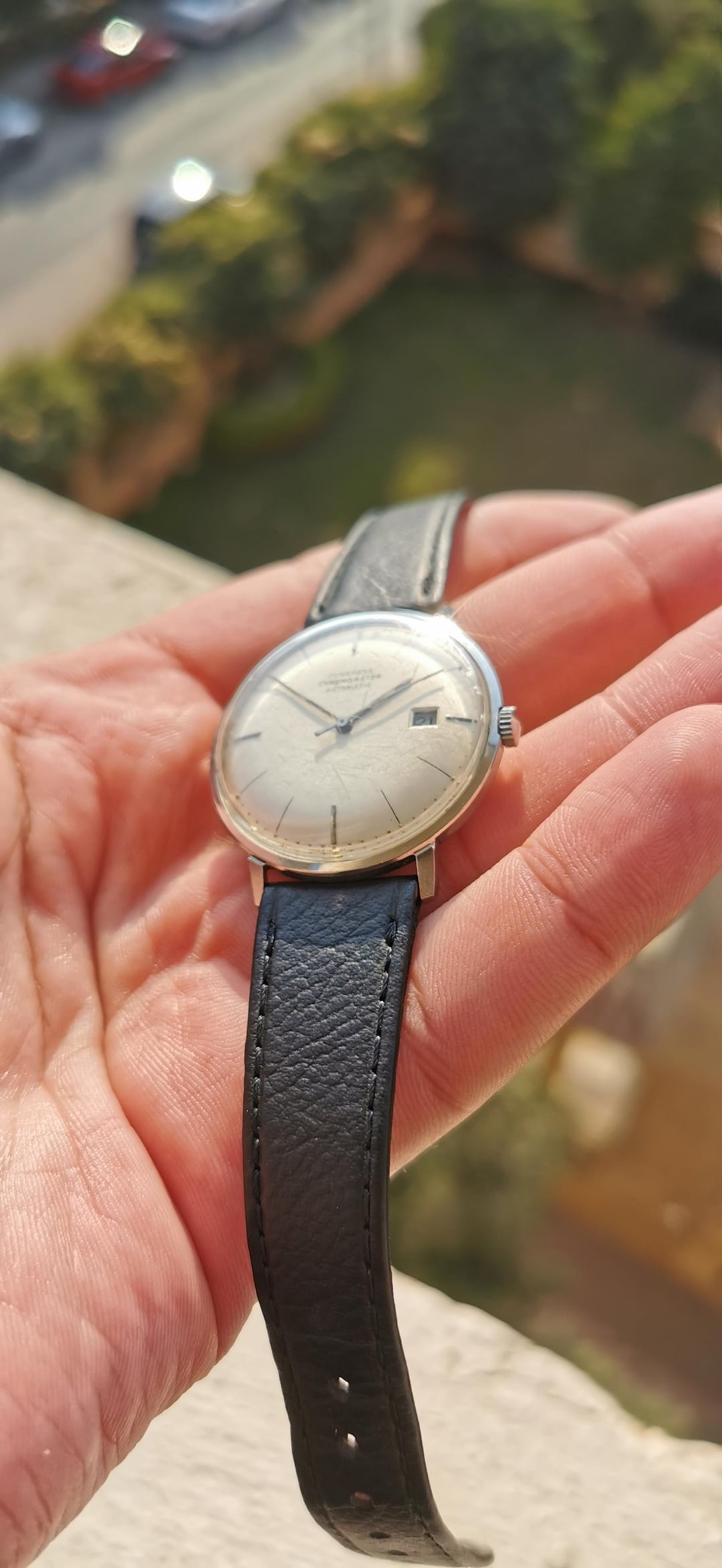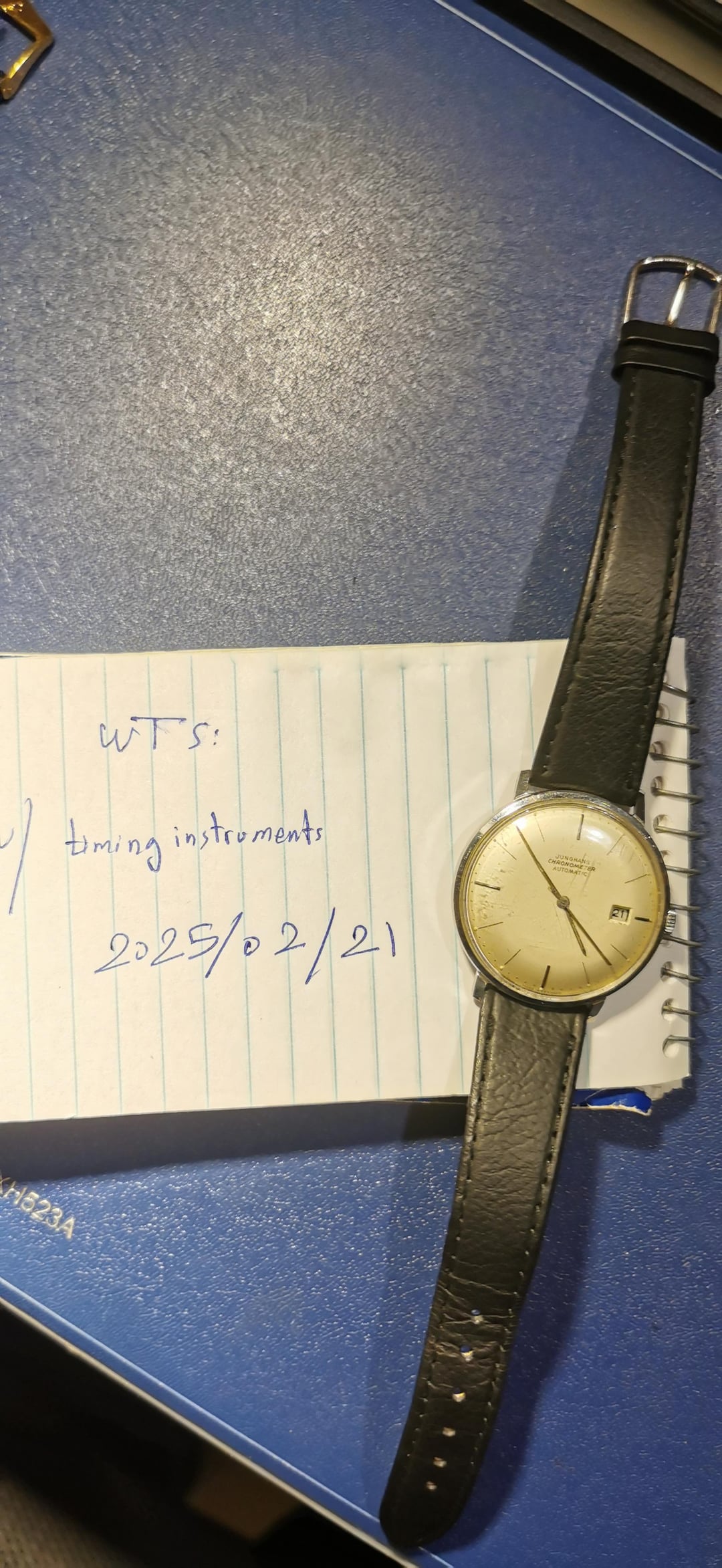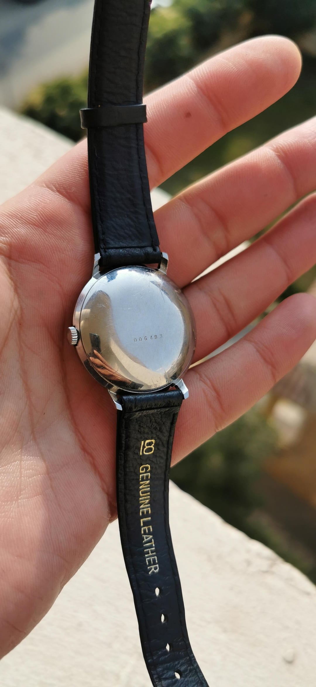 The Max Bill design perfectly captures the essence of Junghans' Bauhaus philosophy, showcasing timeless aesthetics that endure to this day. However, none match the authenticity and craftsmanship of this original piece. Its over-engineered in-house caliber gold plated 83J movement, featuring a jeweled main spring, and a swan-neck regulator, and in chronometer grade, is surly to please any under the hood lookers. With only one previous owner, I serve as the custodian until the next fortunate owner claims it. Recently serviced in January 2025, it performs superbly, with all original parts intact—save for the strap, which has been replaced (original buckle not included). Wearing this watch is a bold statement of appreciation for exceptional design. From its eggshell dial to meticulously considered proportions, this watch exemplifies flawless design. Available for $1699.