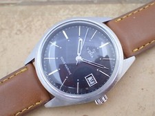 | NOS 40MM 1970'S STEEL YEMA SOUS MARINE " UFO " AUTOMATIC DATE -RARE BLACK DIAL evintagewatches4u (682) |