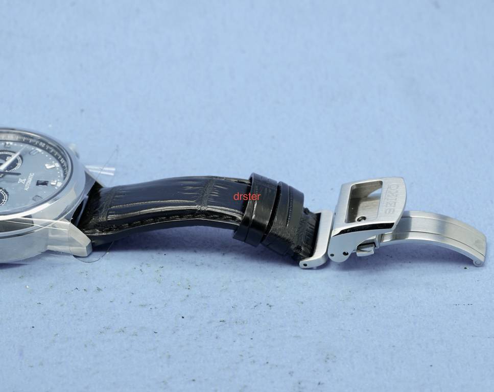 The Seiko comes on the Seiko alligator strap with Seiko deployant.