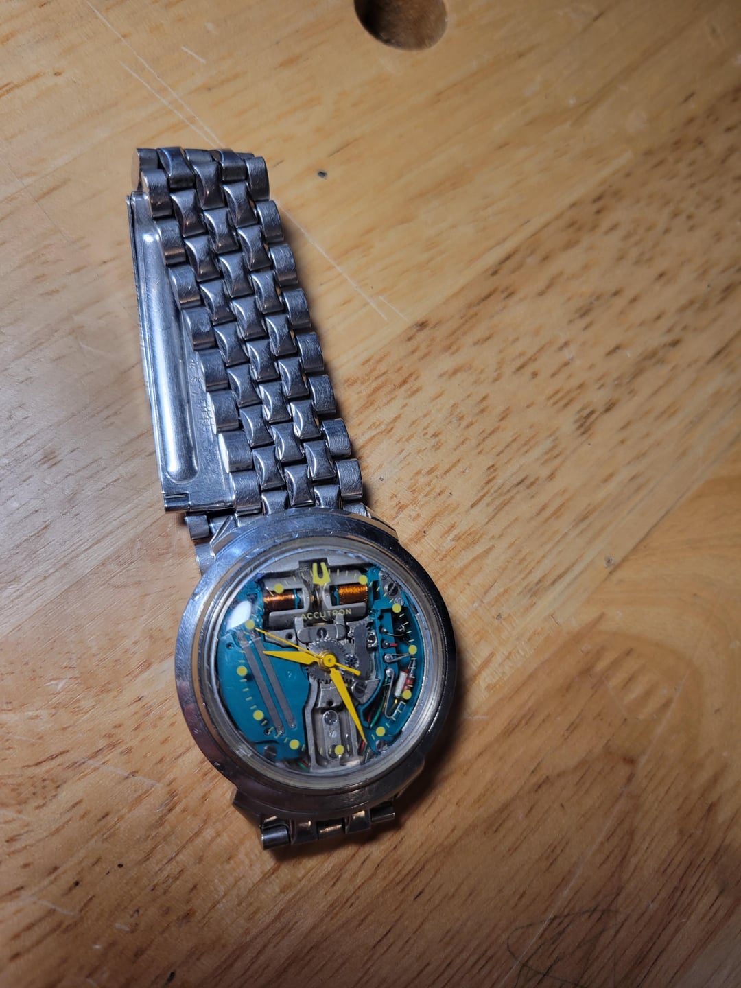 Timestamp: https://imgur.com/a/pvh46l2 Listing my 1963 Bulova Accutron Spaceview for sale or trade. For those who aren't familiar, the Accutron keeps time via an electronic tuning fork oscillating at 360Hz. This results in an extremely smooth sweep of the hands. This Accutron runs well and I have several spare batteries. Starting at $1100, but always open to hear offers. My pricing is based on this being a factory, non-conversion Spaceview with components that match the year code on the case. The majority of Spaceviews you see online are conversions with many mismatched and/or aftermarket parts. This page, under "USA Models", lists the "2362 Spaceview B" which matches my example aside from a slightly different seconds hand (the seconds hand changed from 1962 to 1963). https://spaceview.ca Some additional info on the hands and crystal [NOTE: copy and paste the text of this link rather than clicking on it here. Bizarrely, clicking sends you to a completely unrelated forum thread]. https://www.watchtalkforums.info/threads/1962-1964-accutron-spaceview-b-yellow-dot-identification-101.154913/ My Spaceview has the correct ("turtle") case for a 1963 Yellow Dot, as well as the correct hands and the crystal with the thicker Bulova logo (vs the thin logo on many aftermarket crystals). Will sell for cash (preferred) or trade for an GMT or chronograph. Most interested in a Seiko Alpinist GMT, or a Lorier Hyperion GMT (w/ cash on top, of course). Would prefer to deal via local meetup in the Houston TX area, but can discuss shipping (payment via Paypal G&S).
