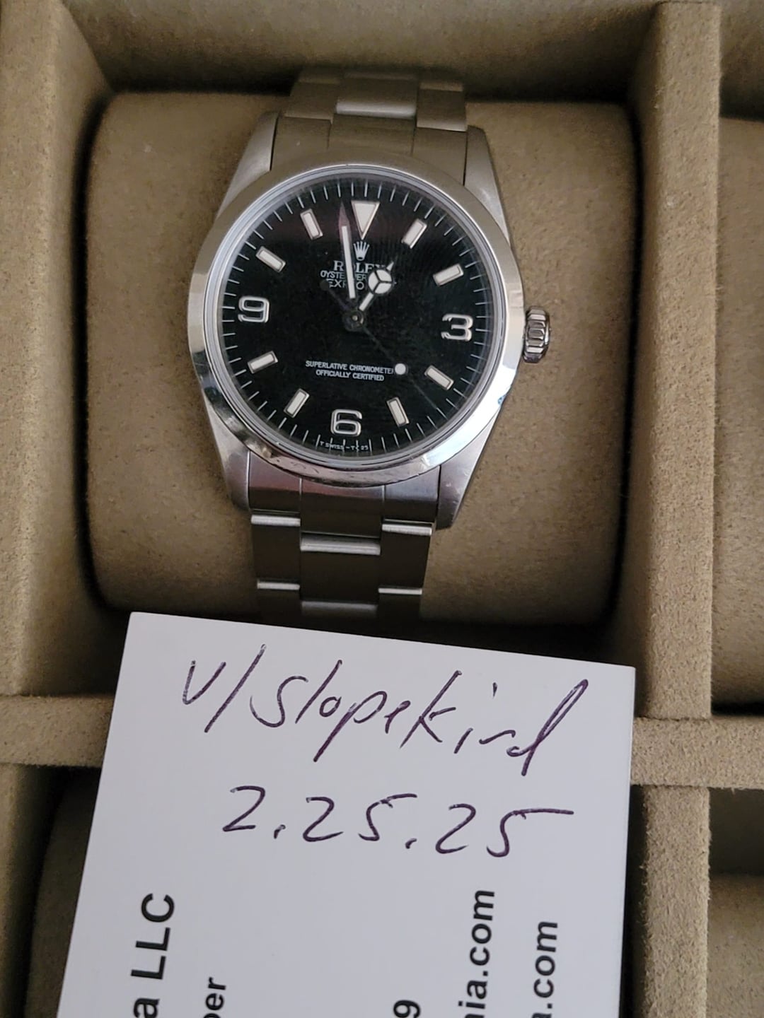 1993 Rolex Explorer Ref: 14270 "S" Serial The watch is in an awesome condition for its age with light wear showing throughout. Shows light "frozen" patina on the dial that is hard to capture. Running well and will come with box. Price = $5250 shipped Pics & Timestamp = [https://imgur.com/a/Cs0hXVN](https://imgur.com/a/Cs0hXVN) IG = watchfornia Cheers, Adam
