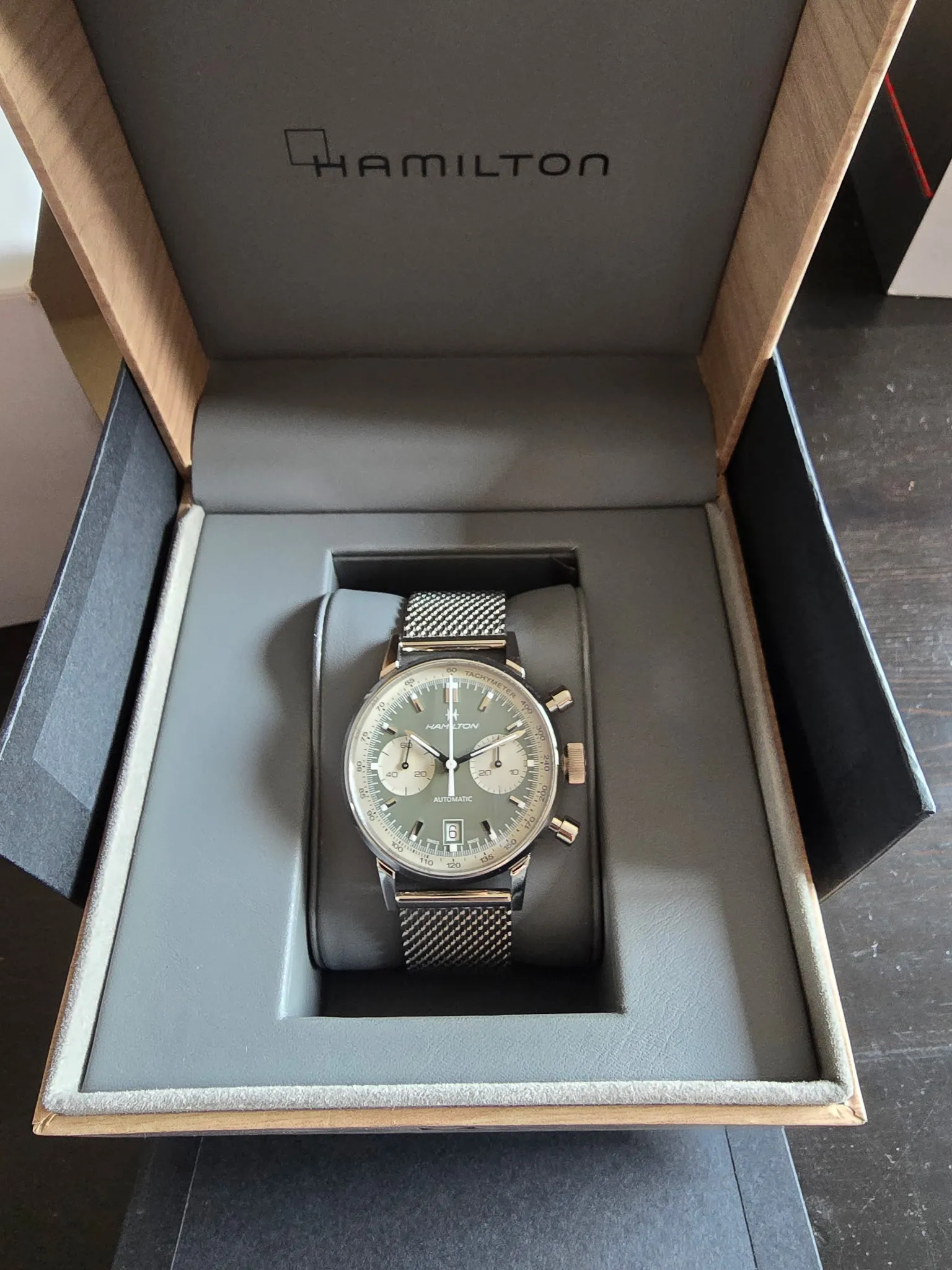 Hamilton Intra-Matic Chronograph - Green Dial - 40mm - Mesh Bracelet