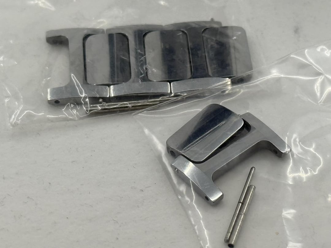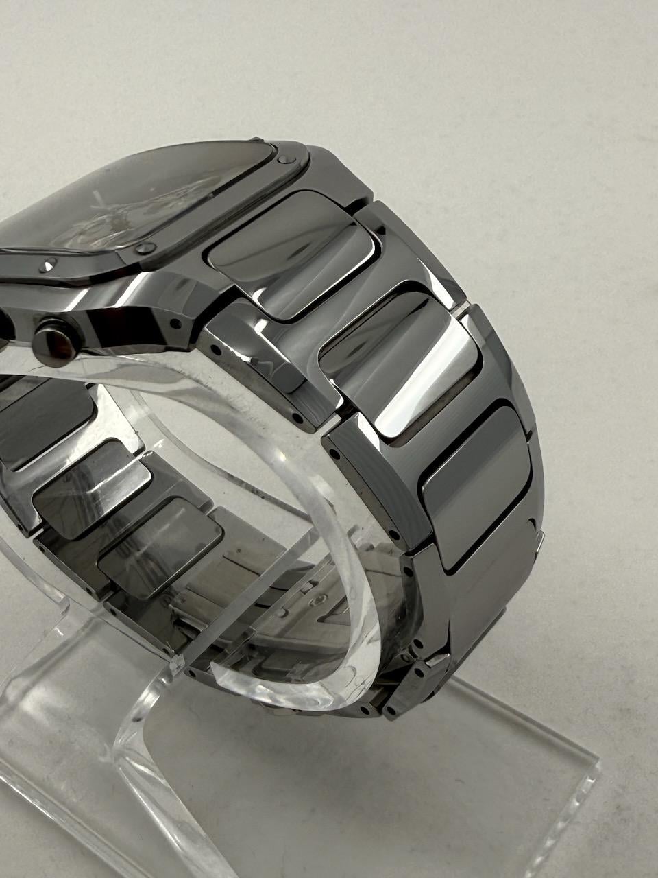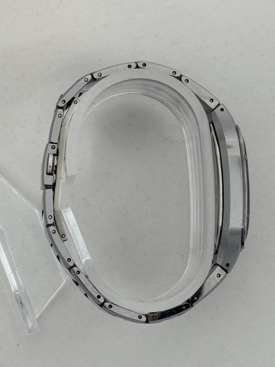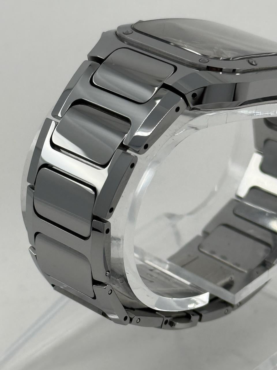 Selling for $600.00 USD plus $20 insurred 2-day FedEx. If you are in LA, I would be happy to meet in person. I do not have the box or the papers. A couple of years ago, I threw them out, dont ask why. I keep my boxes to my smoke detectors, but decided that the watch box was too large to store. This is a VERY unique watch. This is 100% Tungsten (except for the case back). NOTE: The Bracelet is listed as steel, because while Chrono24 allows Tungsten to be selected for the Watch Case, it does not provide Tungsten as a value for the Bracelet. This is because Tungsten is SUPER rare to have in a Bracelet. People are getting tungsten rings these days because it doeso not scratch, well imagine that in a watch. I have had this for about 15 years, purchased it from Tourneau Shop in the Las Vegas Caesar's Forum shops, when it was the largest watch store in the world. Please take a look at the pictures, this watch does not have a single scratch on it. It gleams like the Sun and everybody will ask you what kind of watch you have. It is truly that unique, and looks it. The heavy polish on this watch will allow it to be a Dress watch or even a knock around watch if you dont mind the shiny. Movement: This is a Quartz Chronograph movement and it works perfectly. The battery was just replaced so you should be good to go for a while. Lastly, this watch has a date window at the 4:00 position. Weight: This watch weighs 183 grams including the watch, currently sized bracelet, and the extra links. While Gold is a heavier metal than Tungsten, watches are not made out of 24 Carat Gold, so this watch feels heavier than a solid gold watch of the same size which are made out of alloys lighter than pure gold. Tungsten is a very hard and dense material. If you look at the pictures of the watch and you will see that the watch links are extremely thin and the watch itself is also pretty thin. This is just a great feeling heafty watch. Tungsten is also extremely hard. It is harder than Steel, Gold, Titanium, and... Ceramic. On the Mohs hardness scale, tungsten typically scores higher (around 8-9) compared to ceramic which usually falls in the 6-7 range, making tungsten more resistant to scratches and wear and tear than ceramic. Apple can talk about their DLC or their super hard materials, but nothing they produce can hold a candle to tungsten. This watch is not unscratchable, but it is the hardest possible watch to scratch. If you are going to be desk diving, this is your watch. They did not make many of these, mainly because the material is so hard to work with, let alone polish to a shine such as this. Movado made some tungsten watches awhile back, but they are rare these days. If you have any questions at all, please let me know and I will respond quickly.