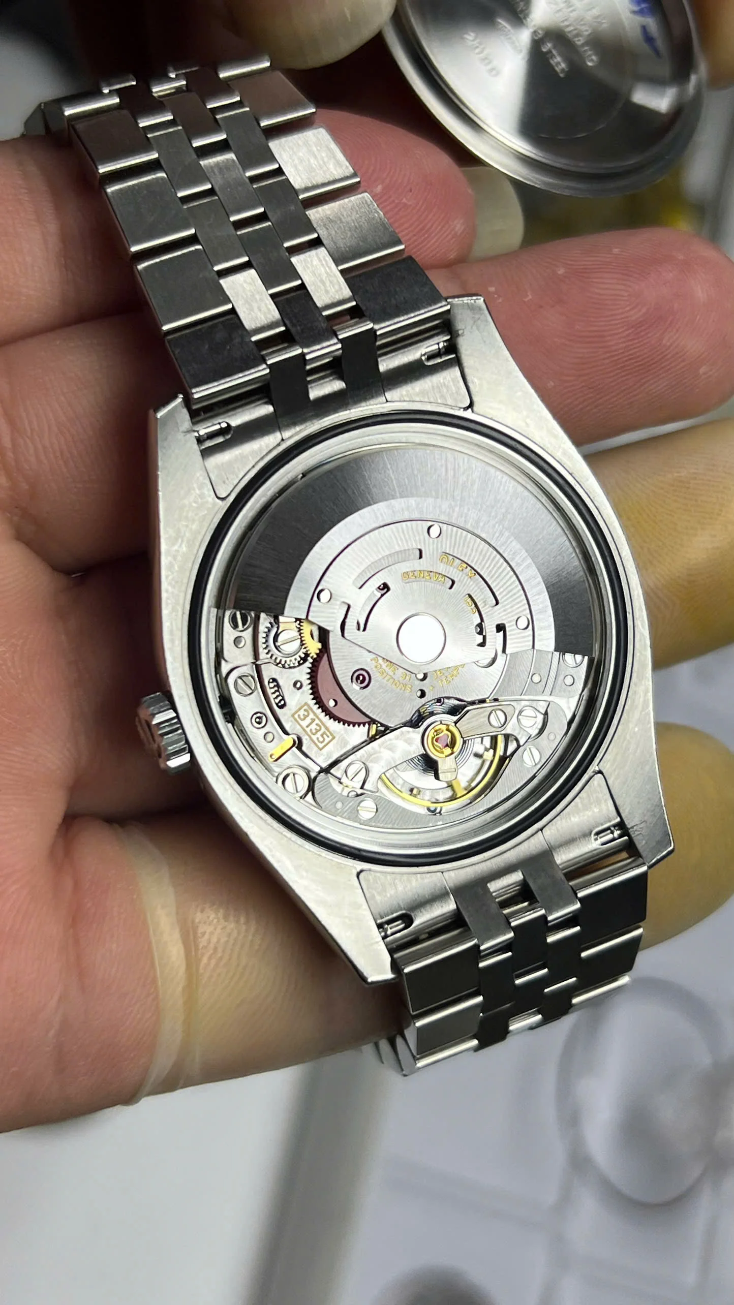 Jubilee bracelet with hidden clasp, still remains tight (has not been retightened). It has 23 links, will fit about 7 ½” wrist