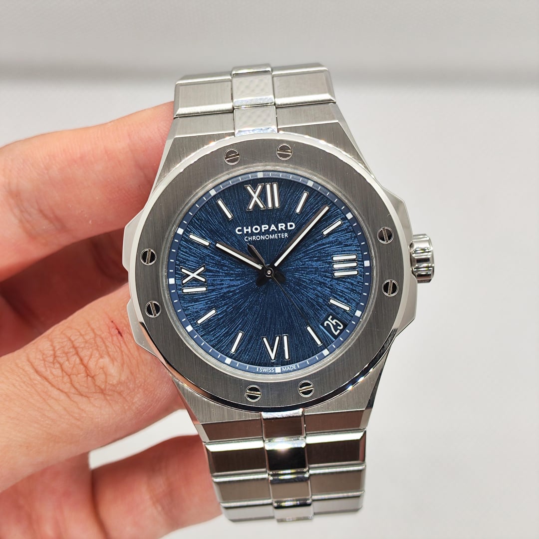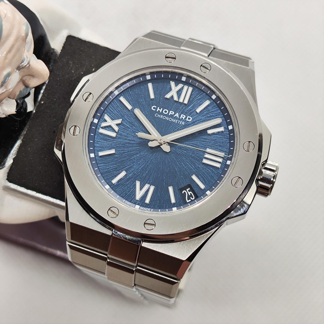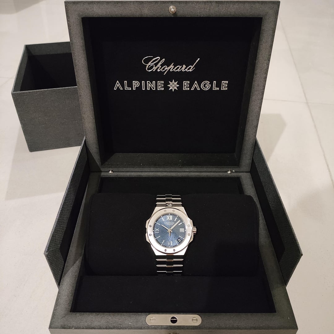 **Chopard Alpine Eagle 41** Condition: Preowned - Very Good (Refer to album) Box and Papers: Yes, dated December 2022 What's Included: Watch, Double Box, Manual, Papers, Full links, Original Boutique Invoice Timegrapher: +4 Second / Day, 285 Amp, 0.0ms Beat Error 💰 Price: USD$8,350 (Including Shipping, no tax / duties to US) 💳 Payment Method: Zelle, Venmo, Wise, USDT 📫 Shipping Method: Worldwide via Fedex International Priority Timestamp: Last image in album Description: Hi Watchexchange, today I have a Chopard Alpine Eagle 41 in Blue up for sale. Stunning textured blue dial paired with a well executed integrated bracelet makes this piece exude class. Engineered with Chopard’s proprietary alloy Lucent Steel A223 which makes it shine in a unique, distinct way. Retail price is over USD$15,000, this piece is priced to move. Price is firm, only PM if you are agreeable to the price or have questions about the piece. Happy to hop on a call to show the piece to any interested buyers! Not looking for any trades, thanks!