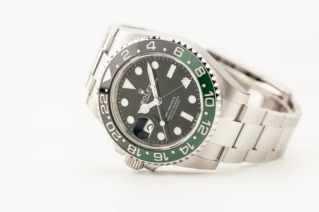 Up for sale is a brand new Rolex GMT Master II Sprite Lefty 40mm Black & Green Ceramic Bezel on Oyster Bracelet, reference # 126720VTNR. It comes complete with all boxes, papers, booklets, hang tags, and Rolex Warranty Card dated September 2024.