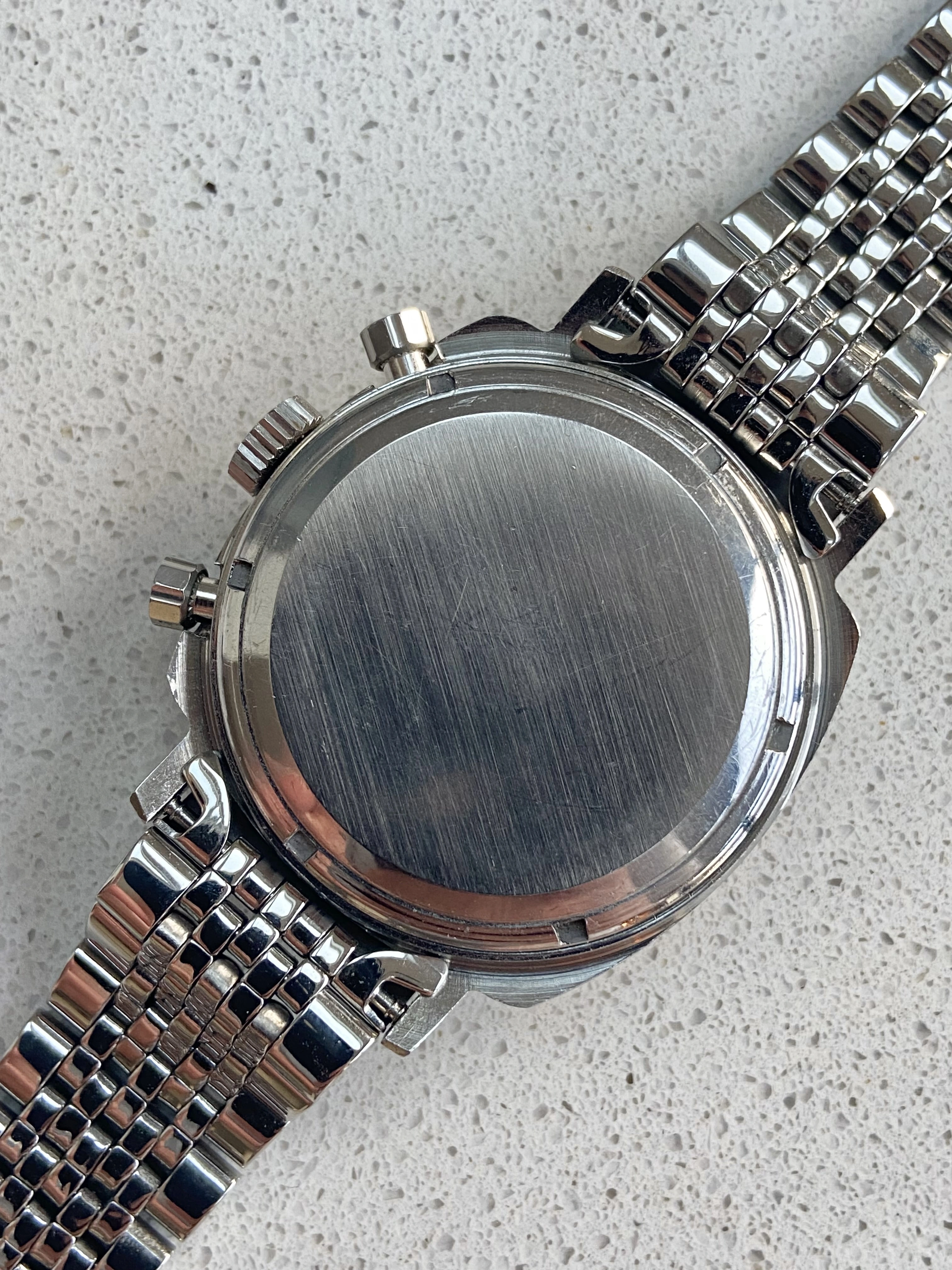 Case: The stainless steel case is also in excellent condition, lovely and sharp, with clear facets and brushed and polished surfaces. Appears unpolished. Serial number and reference number are clearly visible between the lugs. There is no corrosion or damage, the crystal is free from cracks and it retains its original crown and pushers.