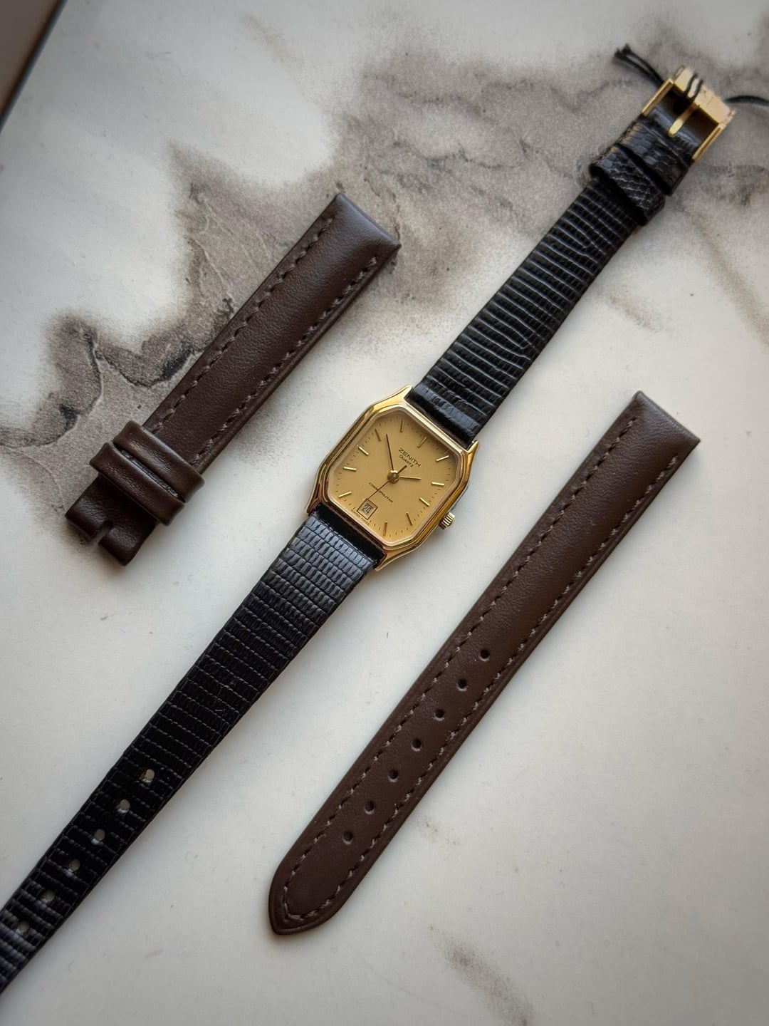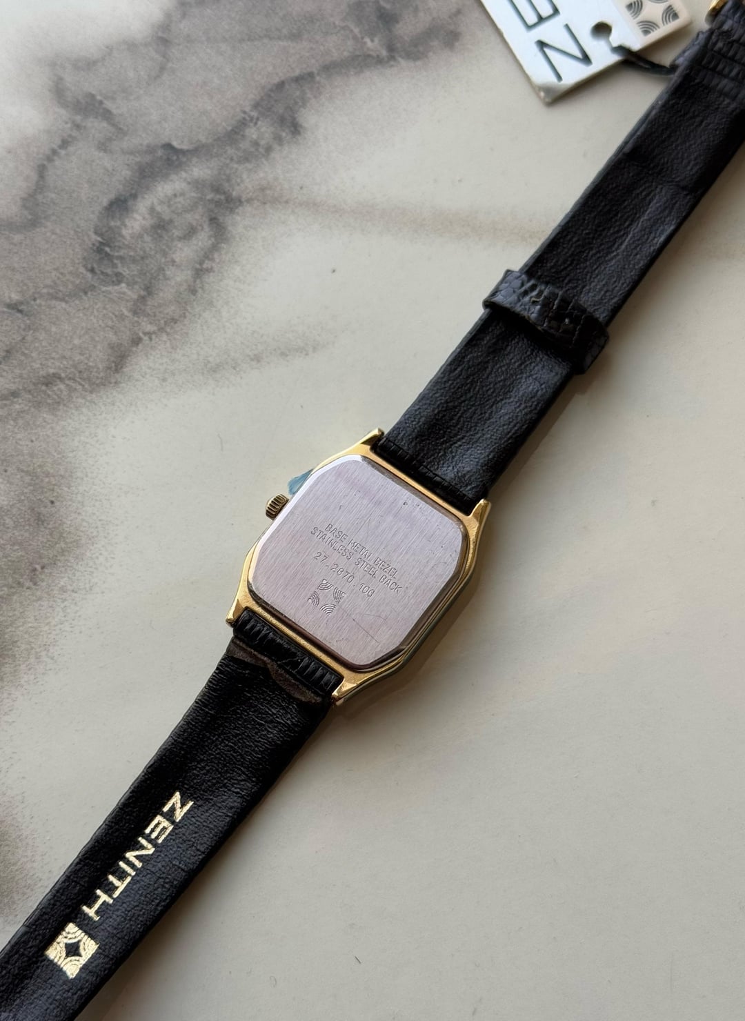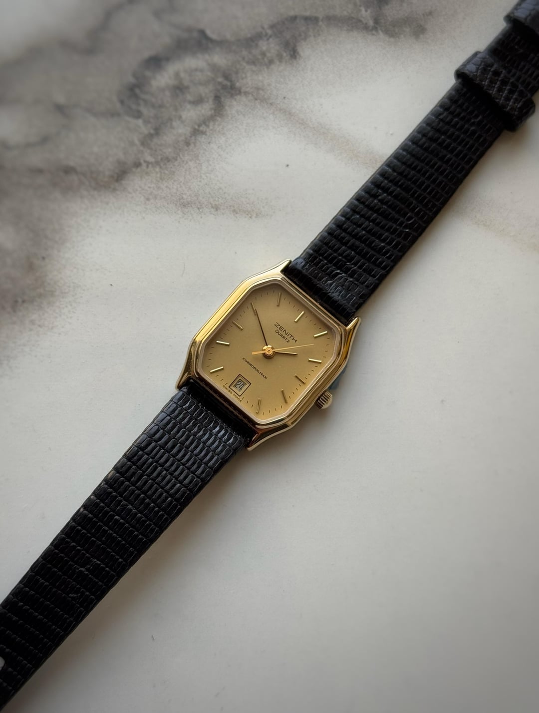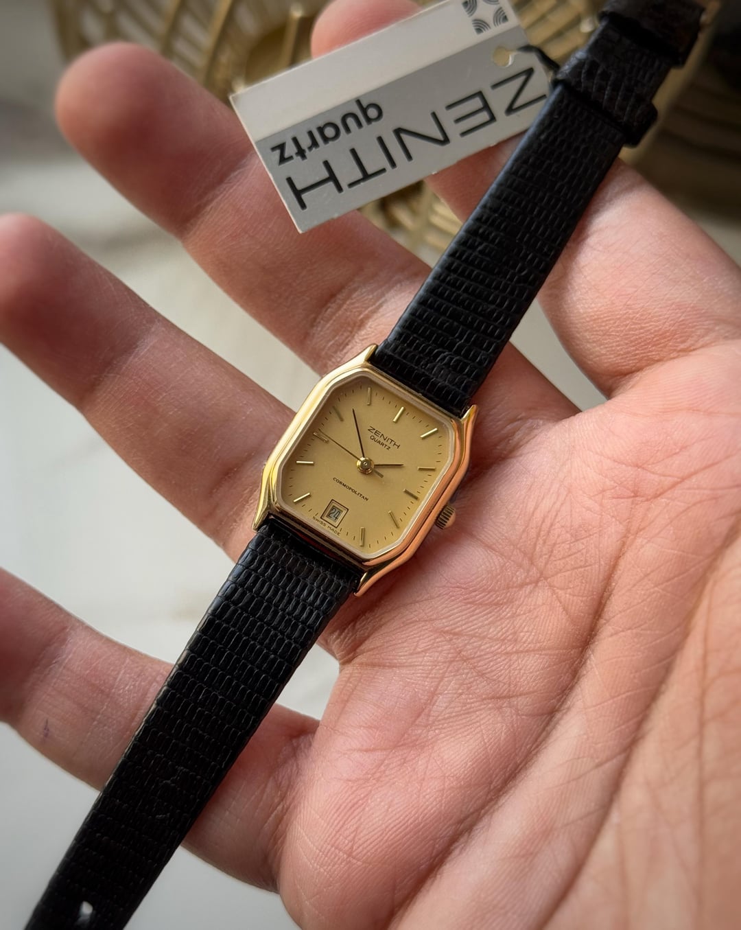 [WTS] NOS Zenith Cosmopolitan Lady Tank only for 175$ Shipped 🚢 (Via FedEx) Up for sale is a zenith cosmopolitan ladies watch featuring a stainless steel/gold plated case with a case size of 20x30mm approximately. Condition of the case is like new since the sides are stickered. Slight swirls maybe overall. Dial is also clean with a date window at 6. Comes on its original unworn zenith signed strap and buckle. Strap seems expired to me thats why will send one brown strap along. Quartz movement working perfectly fine with no malfunctions and keeping accurate time. Watch only! Asking 175$ 🚢 via Fedex Payment through Wise/Crypto/PayPal F&F only The watch will be shipped by coming midweek.