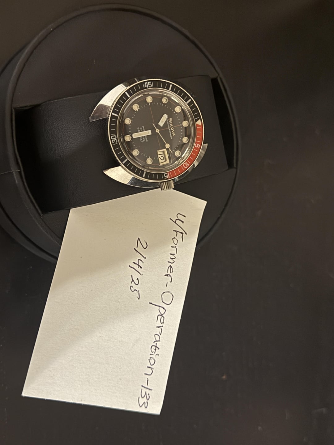 Hello folks! Up for sale today is my Bulova Devil Diver Automatic Snorkel, part of Bulova’s original series 1970s dive watch. This model features a 44mm stainless steel case, black dial, rotating bezel, and 200m (666 feet) water resistance—earning it the legendary “Devil Diver” nickname. The watch also features a screw-down crown, date function, with a hesilite. Head Only. I am the second owner. It’s been lightly worn and well taken care of—just making room for something new. Asking $375 OBO, or open to trades—can trade up or down depending on what you’re offering. 2-day UPS shipping within CONUS! Thanks for looking! 🤙 P.S. I’m new here, if you are concerned, I do have a reference; u/No-Agent1693