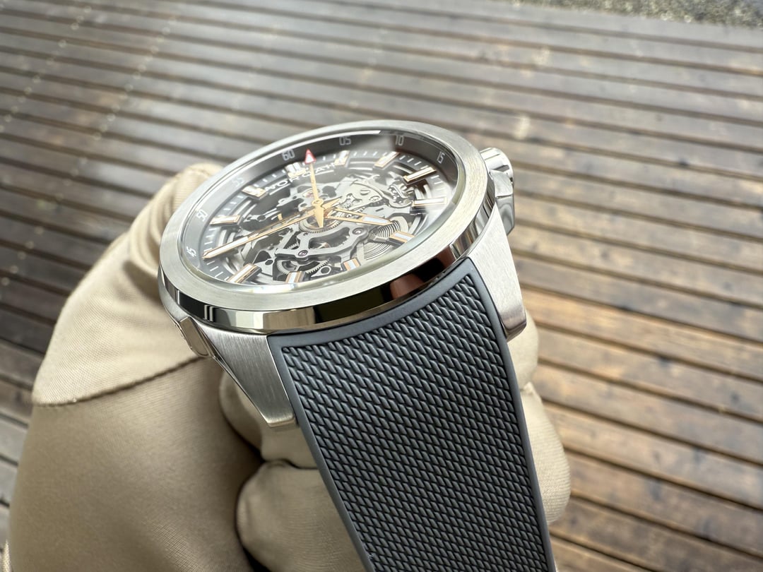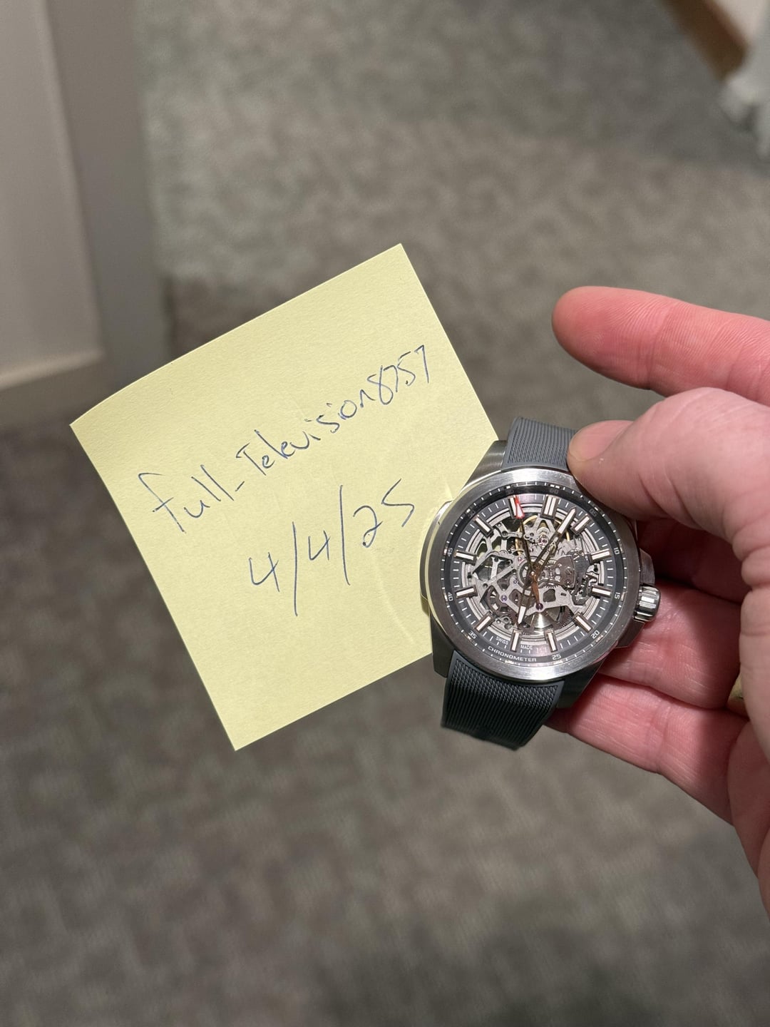 First time getting hands on with one of these and I have to say I am blown away. So nice our owner almost kept this one for himself and he’s a modern Rolex snob lol Model: Independence Skeleton 42 Ref# N3000SLAG303322G Case Material: Stainless Steel Case Dimensions: 42mm Bezel: Stainless Steel Dial: Skeleton Dial with Gold Tone Hands & Markers Band Material: OEM Grey Rubber Strap Max Wrist Size: 8.5 in. Movement: Automatic, Mechanical Accessories: Full Set Condition: Watch is in like new condition with minimal signs of wear. Still has the case back sticker on. Price: $2,300 shipped! Bank wire price. Can take cards for a higher cost. WA Residents subject to sales tax. Email: [email protected] Instagram: porcellojewelers