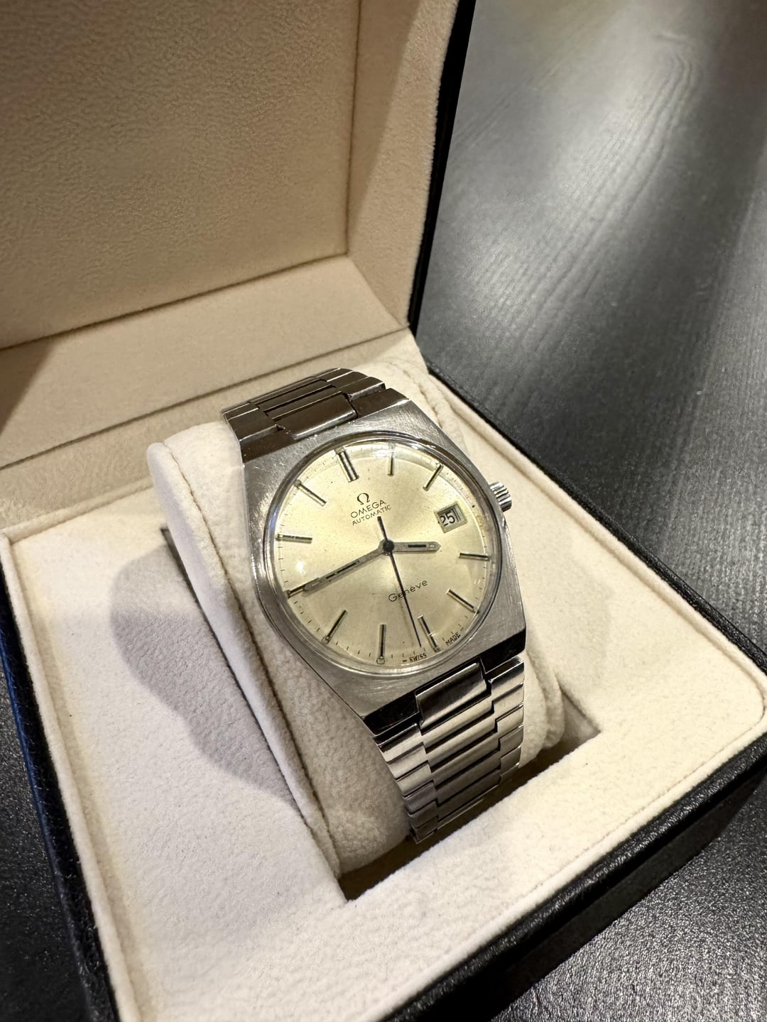 Hi everyone! Was recommended to try Watch Exchange so I’m brand new to this group, apologies if I don’t have the correct formatting. Selling this stunning vintage Omega Genève reference 166.099, a true gem from the 1970’s. • Reference: 166.099 • Movement: Automatic • Case Size: 36mm • Case Material: Stainless steel • Bracelet: Original integrated stainless steel bracelet • Dial: Champagne/silver tone • Date function at 3 o’clock • Crystal: Acrylic • Condition: As shown—Vintage watch shows natural signs of age but overall well-preserved and in excellent condition • Recently serviced & tested within +/-20 sec. This piece wears beautifully on the wrist and offers a clean, minimal aesthetic that’s become increasingly sought-after. A perfect choice for daily wear or a standout addition to a vintage collection. Asking $950 CAD, watch only Can do F2F in Vancouver BC or can ship!