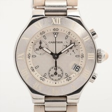 | Cartier Must 21 Chrono Scuff W10197U2 SS SS & Rubber QZ white dial allujapan (8588) |