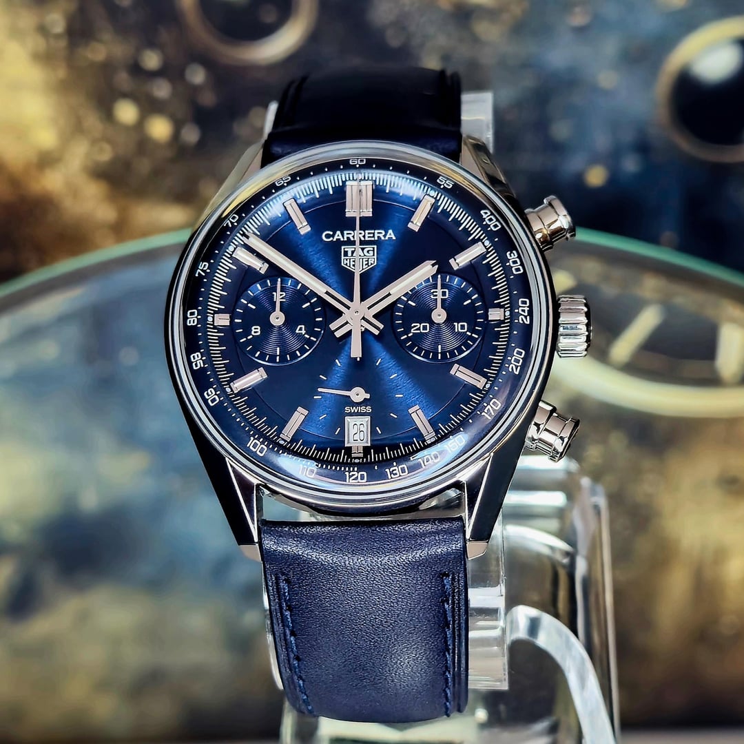 PRICE: $4997 + Label CONDITION: Excellent Condition INCLUDES: Original Inner & Outer Box Leather Travel Case Manual Warranty Card - Open Papers DESCRIPTION: Offered for sale is the Tag Heuer Carrera Chronograph Glassbox CBS2212.FC6535, a stunning homage to the brand's storied heritage. Featuring the iconic Carrera silhouette reimagined for the modern collector, this reference showcases a captivating deep blue dial beneath a domed sapphire “glassbox” crystal that evokes the charm of vintage racing chronographs. The watch is powered by the in-house Heuer 02 automatic chronograph movement, delivering an impressive 80-hour power reserve. Its case measures 39mm in diameter—perfectly sized for everyday elegance—and comes mounted on a premium blue calfskin leather strap with matching stitching. SPECIFICATIONS: Reference: CBS2212.FC6535 Case Size: 39mm Case Material: Stainless Steel Dial: Blue with sunray finish, luminous hands and markers Crystal: Domed Sapphire (Glassbox design) Movement: Heuer 02 Automatic Chronograph Power Reserve: 80 Hours Water Resistance: 100 meters Strap: Blue Calfskin Leather Buckle: Stainless Steel Folding Clasp Why Buy? When you purchase a watch from us, you also receive the guarantees and services you would expect from a luxury watch dealer. We guarantee quality and exactly what you see in our listing, providing the ultimate peace of mind. RETURNS: You have 14 days to inspect the watch. The watch must be returned in its original condition, or an additional fee will be charged based on the extent of the damage or missing parts. Coastal Timepieces Warranty We offer a 120-day warranty on your watch at no additional cost. If something goes wrong within 120 days, we will pay for your USA return shipping and have our master jeweler fix it so that it functions like new. The warranty covers internal movement only. Timestamp: [https://imgur.com/0DVlLUp](https://imgur.com/0DVlLUp) Over 40 successful watch deals on FB, eBay and Chrono I can easily be found through an internet search IG: coastaltimepieces\_usa