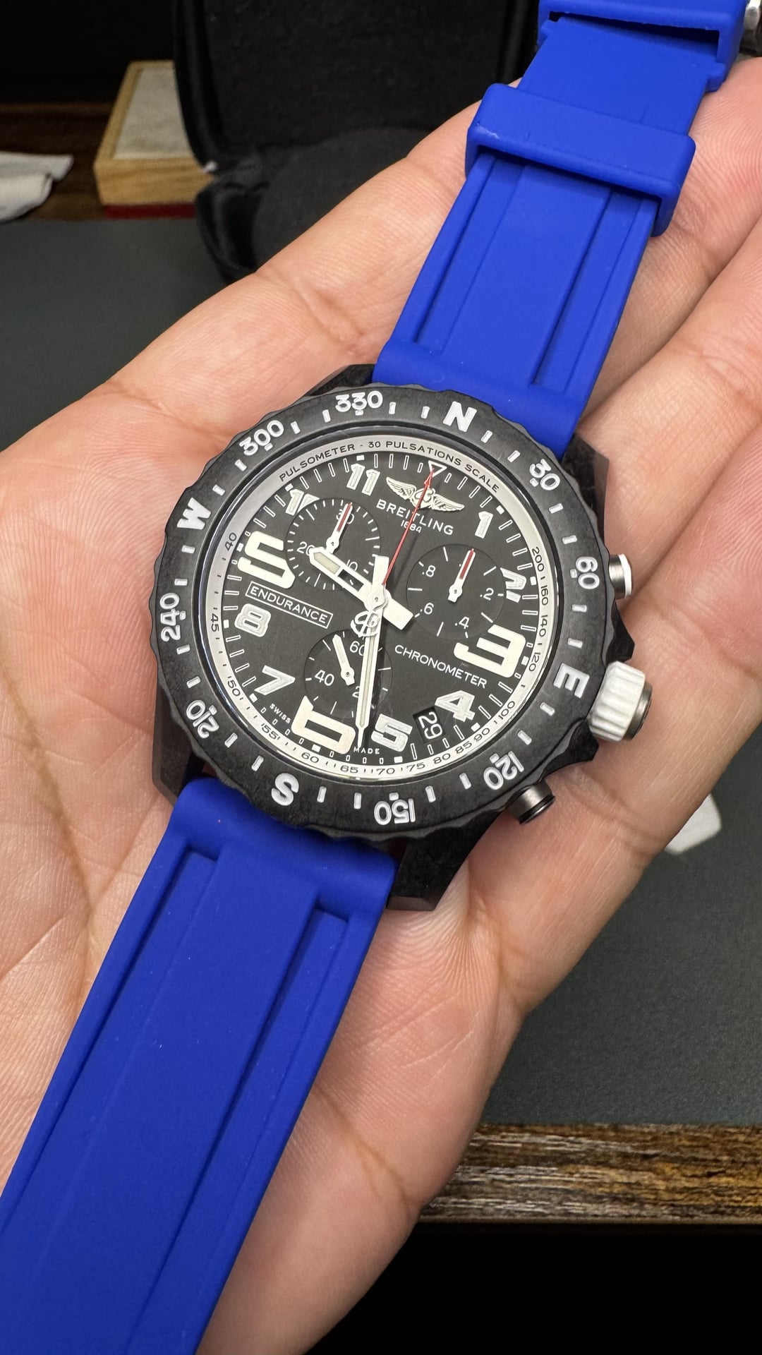 Located in the US For Sale! Breitling Endurance Pro 44 $2,100 shipped within USA Comes with what you see, a black Breitling case and cloth. And I will throw in an extra blue rubber strap from WisStraps which is pretty much new. Overall great and working condition. only flaws could see is a very and I mean very minor mark/scuff on the glass that is hardly noticeable, I tried my best to show the whole watch in detail so you could see for yourself. It never affected when checking the time and I hardly ever noticed it. ~~~~~~~~~~~~~~~~~~~~~~~~~~~~~~~ Farquhar Synchro ($320 shipped within USA) Excellent near new condition, it includes its original case and warranty card as well, it’s less than 3 months old. It has really fun lil features once you learn to use it which is pretty easy. Quite a few YouTube videos on it so you can see it in action. From Website - jump hour watch, combining modern technology with classic race inspired looks! spec as Follows 44mm 316L stainless steel case ( case shape allows the case to wear well on smaller wrists too so no bneed to be scared off by the dimensions)22mm strap gap50mm Lug to Lug13.8mm thicknessDomed Sapphire GlassBGW9 swiss sueprlumeFKM straps ( black as standard with optional coloured add ons)Option to add stainless steel mesh bracelet also Movement Synchro houses a very special , algorithm controlled quartz gearbox movement, developed in collaboration with Miyota, a patented design which is not in use by any other brand on the market at present The movement is super accurate and gives an amazing visual on the hour, every hour! When the minute hand strikes 60, the hand resets to the Zero position, with the hour disc rotating in Sync. ~~~~~~~~~~~~~~~~~~~~~~~~~ Citizen Suratto $250 Shipped within USA Excellent near new condition, comes with all original packaging. With Citizen’s eco drive tech. And a great dial texture that sorta changes colors and truly comes to life when the sun hits it. This is a super cool and seriously nice looking watch. Ultra thin at about 4.7mm thin.