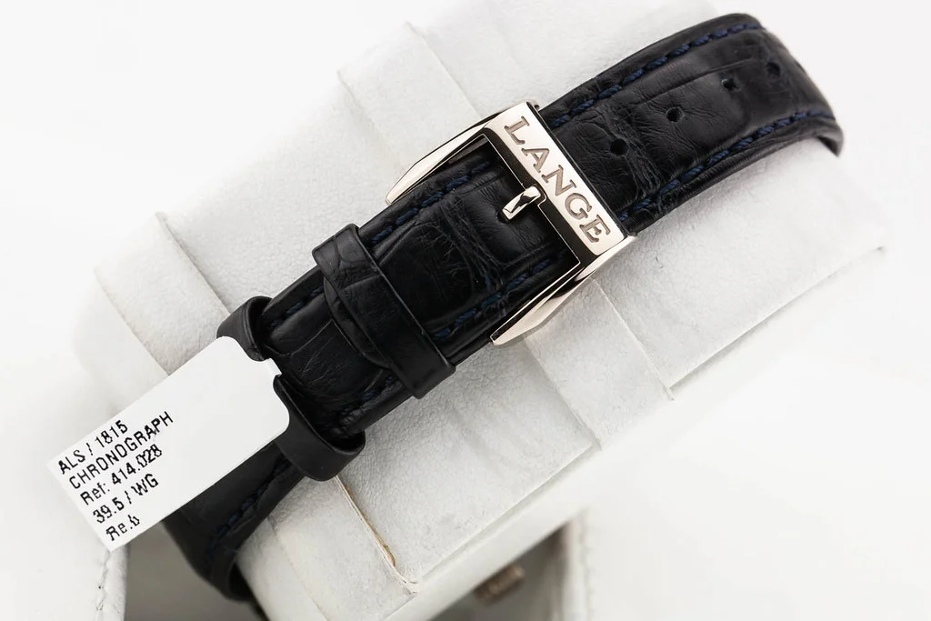 Up for sale is a near-mint condition A. Lange & Söhne 1815 Flyback Chronograph 38.5mm White Gold Black Dial on Alligator Strap, reference # 414.028 / LSLS4143AG. It comes complete with all boxes, papers, booklets, and Lange Guarantee Seal dated December 2020.