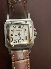 Up for sale is a Cartier Santos Octagon Automatic Ref. 2966, a striking example of Cartier’s signature sophistication blended with classic mechanical craftsmanship. This vintage automatic model features a two-tone (steel and gold) octagonal bezel design, iconic Roman numeral dial, and a quickset date complication at 3 o’clock. Powered by an automatic movement, this piece offers timeless style with the enduring appeal of traditional watchmaking. Also has the secret signature at 7'o clock. Key Features: Brand: Cartier Model: Santos Octagon Reference: 2966 Movement: Swiss automatic with quickset date, recently serviced and running well Dial: White with black Roman numerals and date window and secret signature at 7 Case: Stainless steel with gold-tone bezel (approx. 29-30mm) Crystal: Sapphire Condition: Excellent vintage condition with signs of light wear Strap: Includes an aftermarket lizard brown strap (not currently attached as I don't have the tool Accessories: Includes authentic red Cartier suede pouch A rare opportunity to own a true Cartier classic with an automatic movement and timeless design. Perfect for collectors or those seeking a refined, vintage statement watch. Asking $2049 shipped to CONUS, or best offer International buyers pay shipping. I take Venmo, cashapp, Zelle, PayPal f&f or a bank wire. Can also meet in NYC face to face. Feel free to ask any questions!