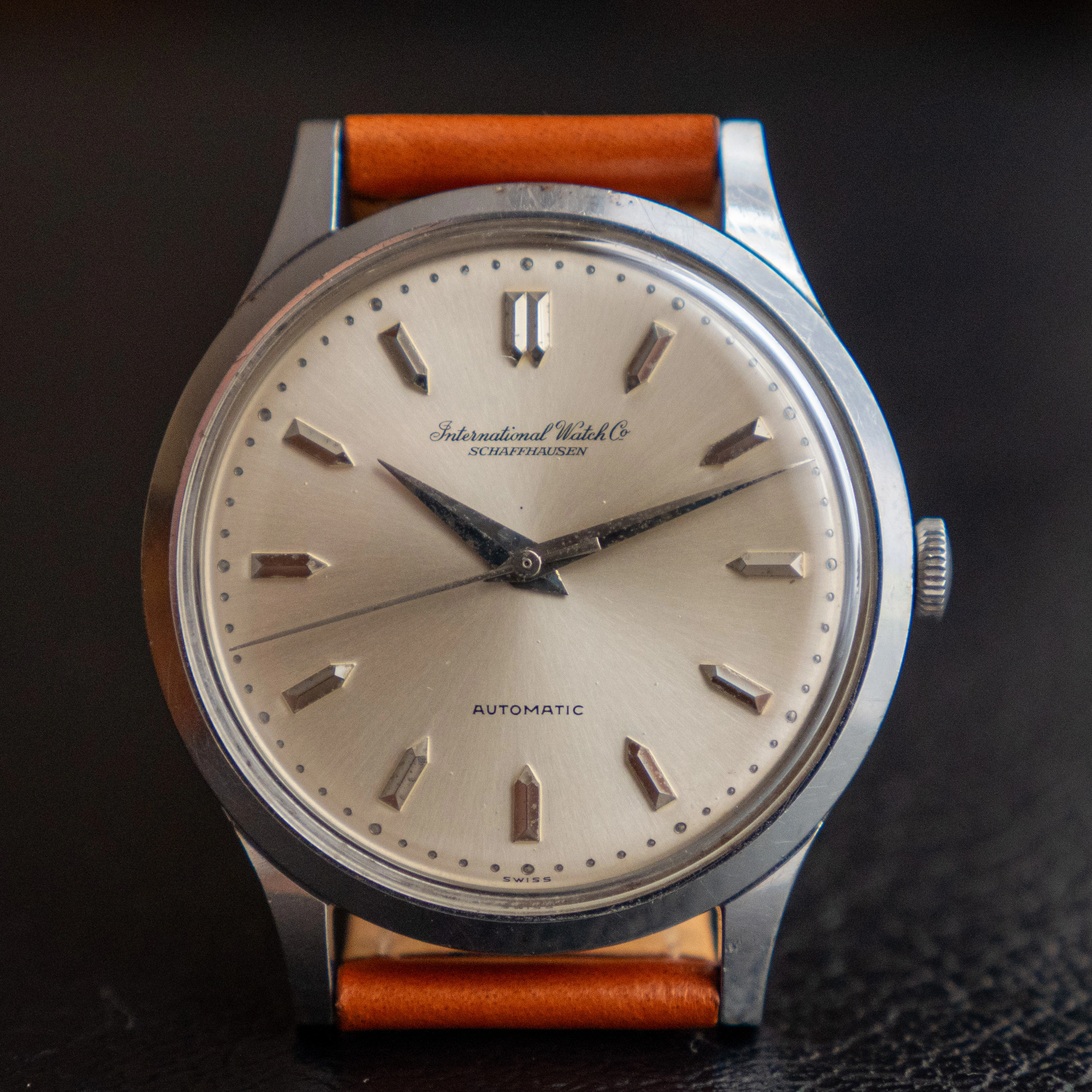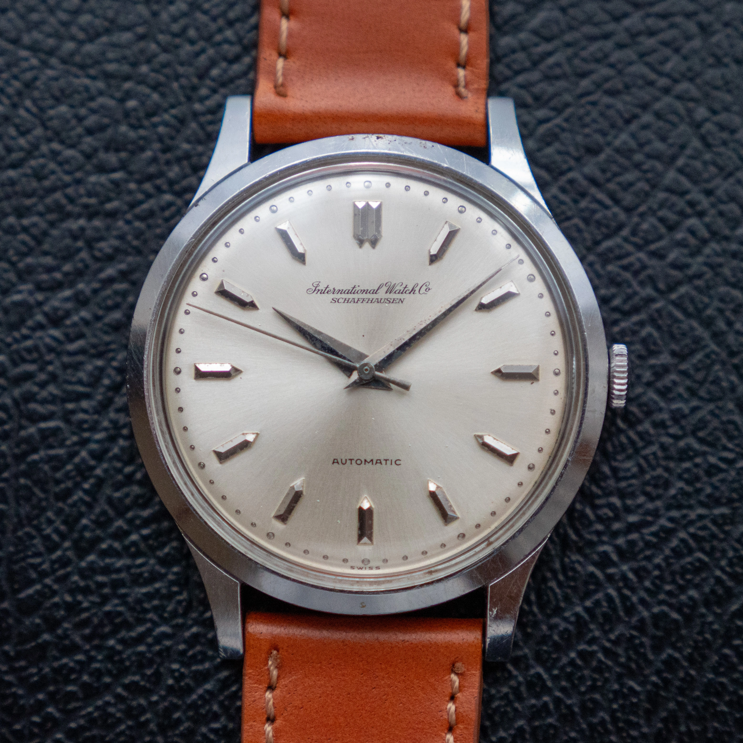 - The dial is a beautiful sunburst champagne dial. It has the really nice cursive IWC logo, a signature of the IWCs of this era. It has some very small dots/stains here and there. They are visible in the photos.
