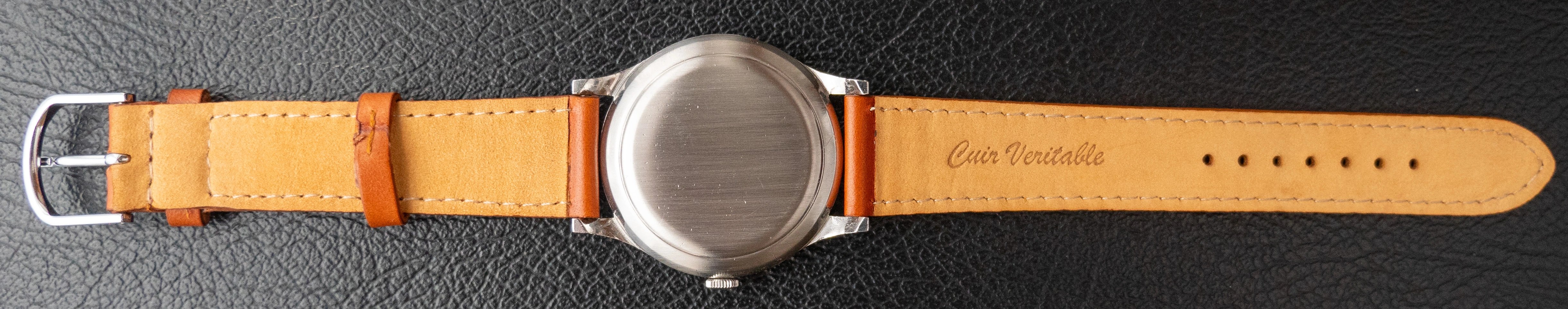 This particular reference is slightly bigger than its contemporary models. Its case is 36mm of diameter without the crown.