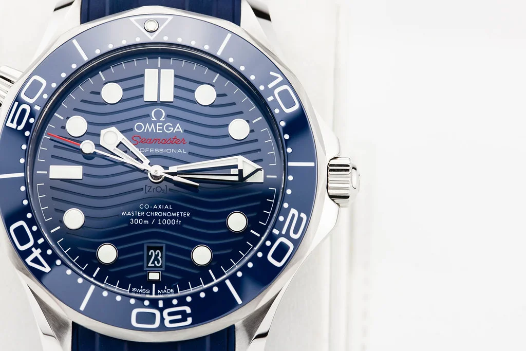 Up for sale is a brand new Omega Seamaster 300 Blue Wave Dial on Rubber Strap, reference # 210.32.42.20.03.001. It comes complete with all boxes, papers, booklets, hang tag and Omega Warranty Card dated November 2024.