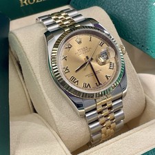 | Rolex DateJust 36mm CHAMPAGNE 18K Gold Fluted Steel SUPER JUBILEE 116233 Watch collectorswatches (8963) |
