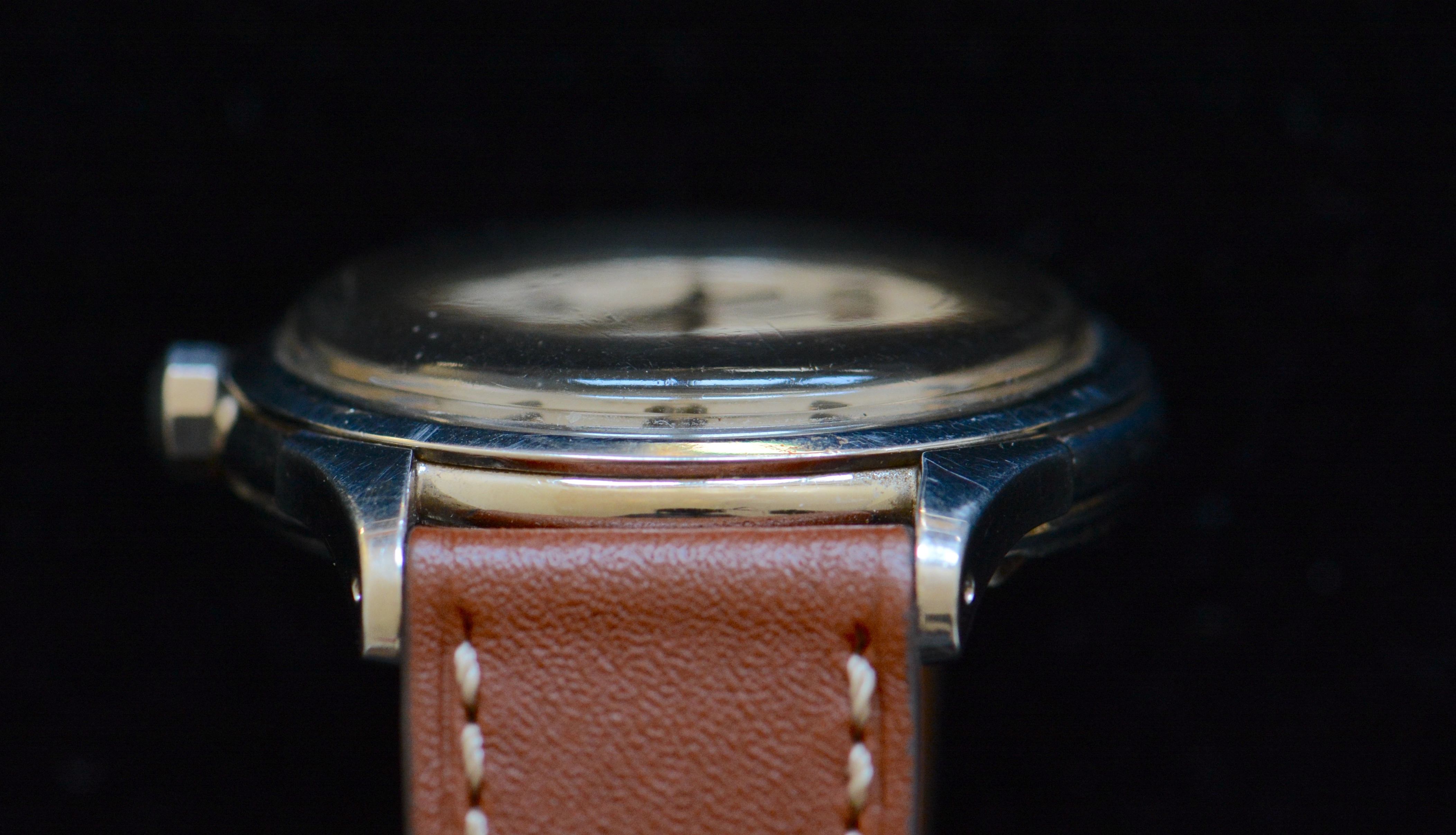 Dial: Excellent and clean two-tone dome dial, only minor specks of patina only visible on macro pics / under a magnifier. The configuration is quite peculiar compared to other Constellations from the 50s, and seems to be only found on 2887 (please correct me if I'm wrong). Desmond's articles features other examples with the same configurations, i.e. lozenge shaped indices combined with onyx filled bar indices at 3-6-9-12. ChronomeTER spelling as to be expected for a Constellation from the late 50s, but combined with the Crossed t Constellation font typically found in earlier Constellation references. The hands show signs of oxidation, mostly visible on the second hand.