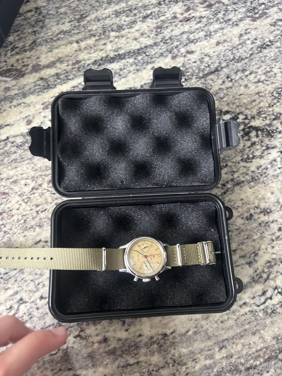 [WTS] Seagull 1963 Chronograph – $150 • Condition: Pre-owned; includes case • Details: 38mm stainless steel case, manual-wind ST1901 chronograph movement. • Payment: PayPal FF, Wire, Venmo, Cashapp • Location: East Lansing, MI • Shipping: CONUS shipping included; international shipping available at buyer’s expense • Trades: Not accepted at this time • Financing available Let me know if you need further information or have any questions!
