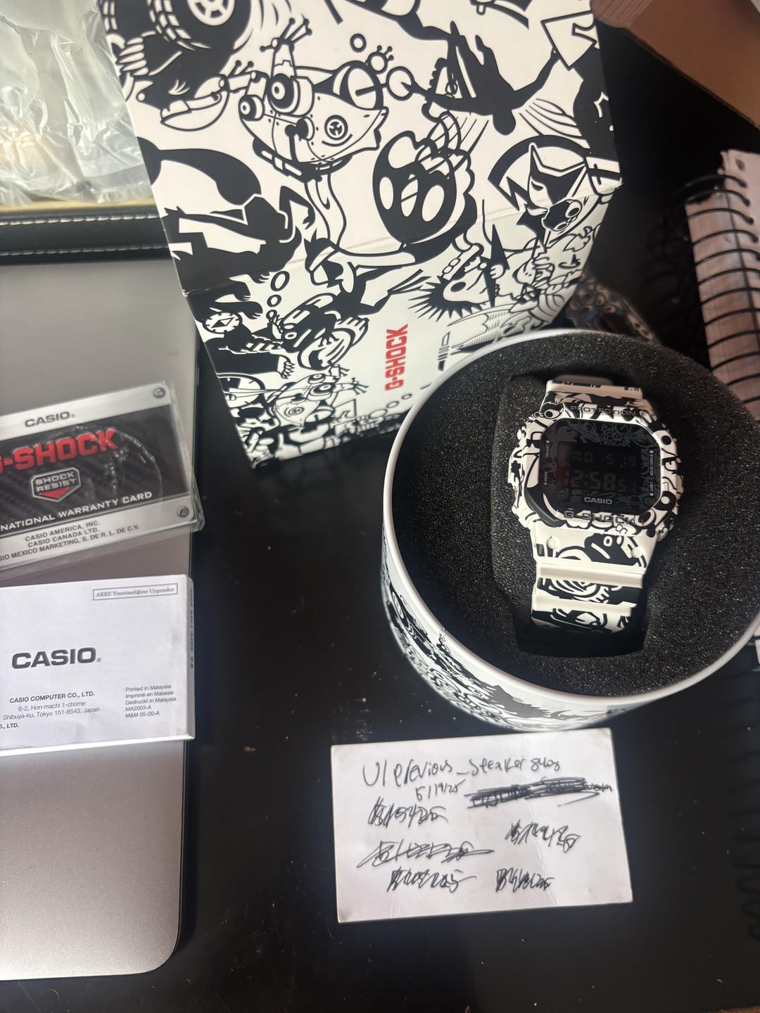 [WTS] Casio G-Shock DW5600GU-7 “G-Universe” – $85 • Condition: Excellent; includes original box and papers. • Details: This limited-edition G-Shock DW5600GU-7 features a white resin case and band adorned with black illustrations of 18 iconic G-Shock characters, paying homage to the “Master of G” series. The watch offers standard G-Shock durability with shock resistance and 200-meter water resistance. It includes a 1/100-second stopwatch, countdown timer, multi-function alarm, EL backlight, and an approximate battery life of 2 years on a CR2016 battery. • Payment: PayPal FF, Wire, Venmo, Cashapp • Location: East Lansing, MI • Shipping: CONUS shipping included; international shipping available at buyer’s expense • Trades: Not accepted at this time • Financing available Let me know if you need further information or have any questions!