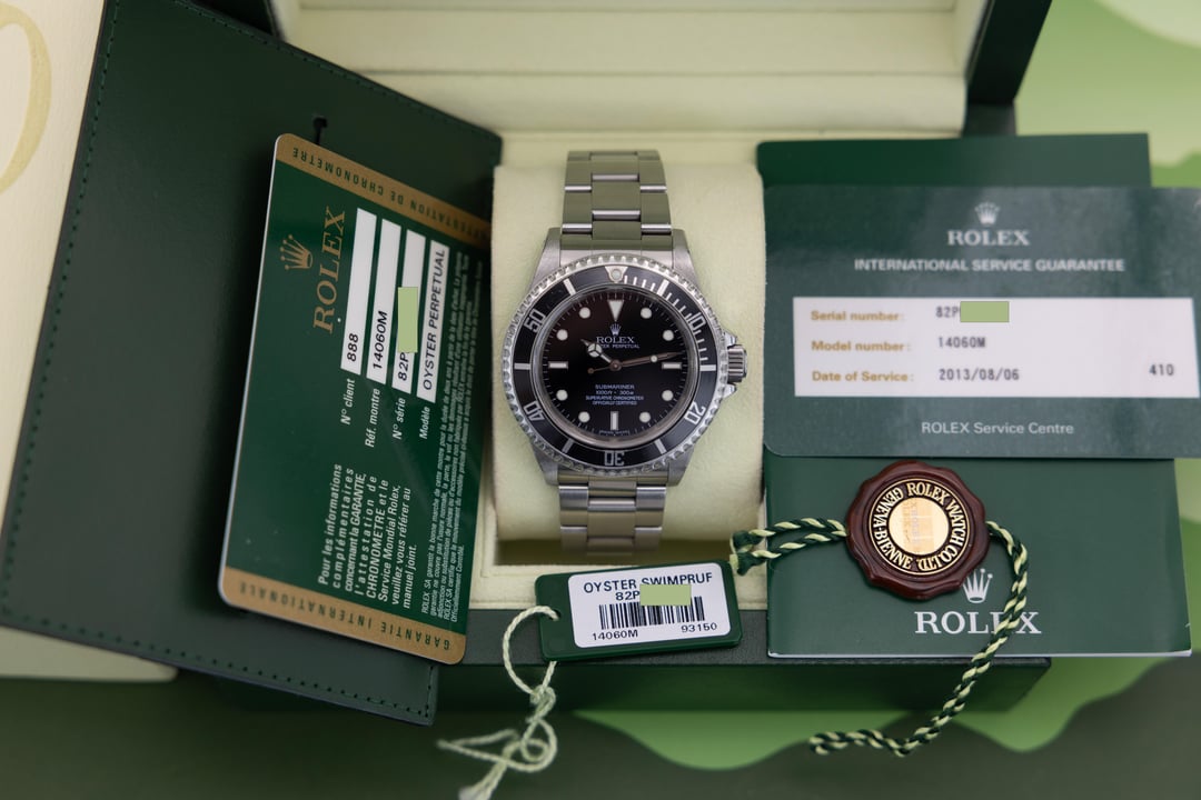 [pics](https://imgur.com/a/LT5Xut6) [timestamp](https://imgur.com/hx7Em8R) Case: Excellent condition 40mm case with thick lugs. Light wear from use. Random serial. Dial: Excellent 4-liner superluminova black glossy dial with matching hands. Bracelet: The 11 link oyster bracelet is in excellent condition and remains tight. The clasp is stamped with an RS code dating it to 2010. Includes divers extension. Accessories: Inner/outer boxes, booklets, hangtags, bezel protector, 2013 RSC service card, and original warranty card. Notes: The last version of the legendary ref. 14060m. Offered at $10,550 shipped. Payment by PayPal F&F, bank wire, or crypto. Located in San Diego, CA. Insured overnight FedEx shipping. International shipping available. Buyers shipping the watch to CA will be required to pay applicable sales tax. Thanks for looking and feel free to message me with any questions!! Hit me up on IG @mvvwatches Email: [[email protected]](mailto:[email protected])