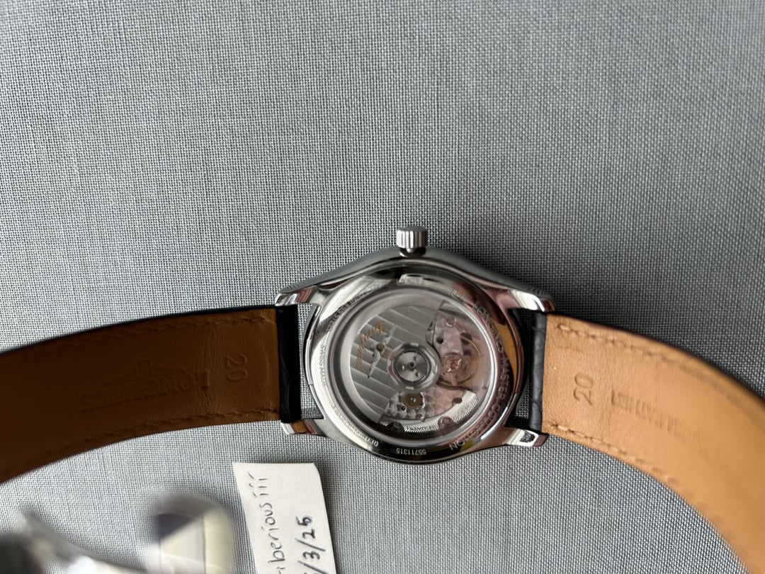 Good afternoon! For sale today is my Longines Master Small Seconds that I purchased two months ago—I love the watch, but it hasn’t gotten the wrist time it deserves, so it’s time to pass it off to someone who will wear it more than I have. This watch is priced to sell quickly at $1100 Price is shipped/insured within the US, international shipping available at buyer’s expense. Zelle preferred, PP F&F/Venmo also accepted. Quick specs: Quick Specs: Reference: L2.843.4.63.2 Stainless Steel Case Sapphire Crystal 38.5mm Case 20mm Lug Width 10.2mm Thin 44.9mm Lug to Lug 3bar/30m Water Resistance Longines Cal.893 Movement 72hr Power Reserve. The watch is in excellent condition, no major flaws to be found. I’ve worn it a handful of times since I purchased it 2 months ago. Light hairlines on clasp. Very mild wear on strap. I do have 1 additional strap (Black longines alligator strap) that I’d be happy to include.
