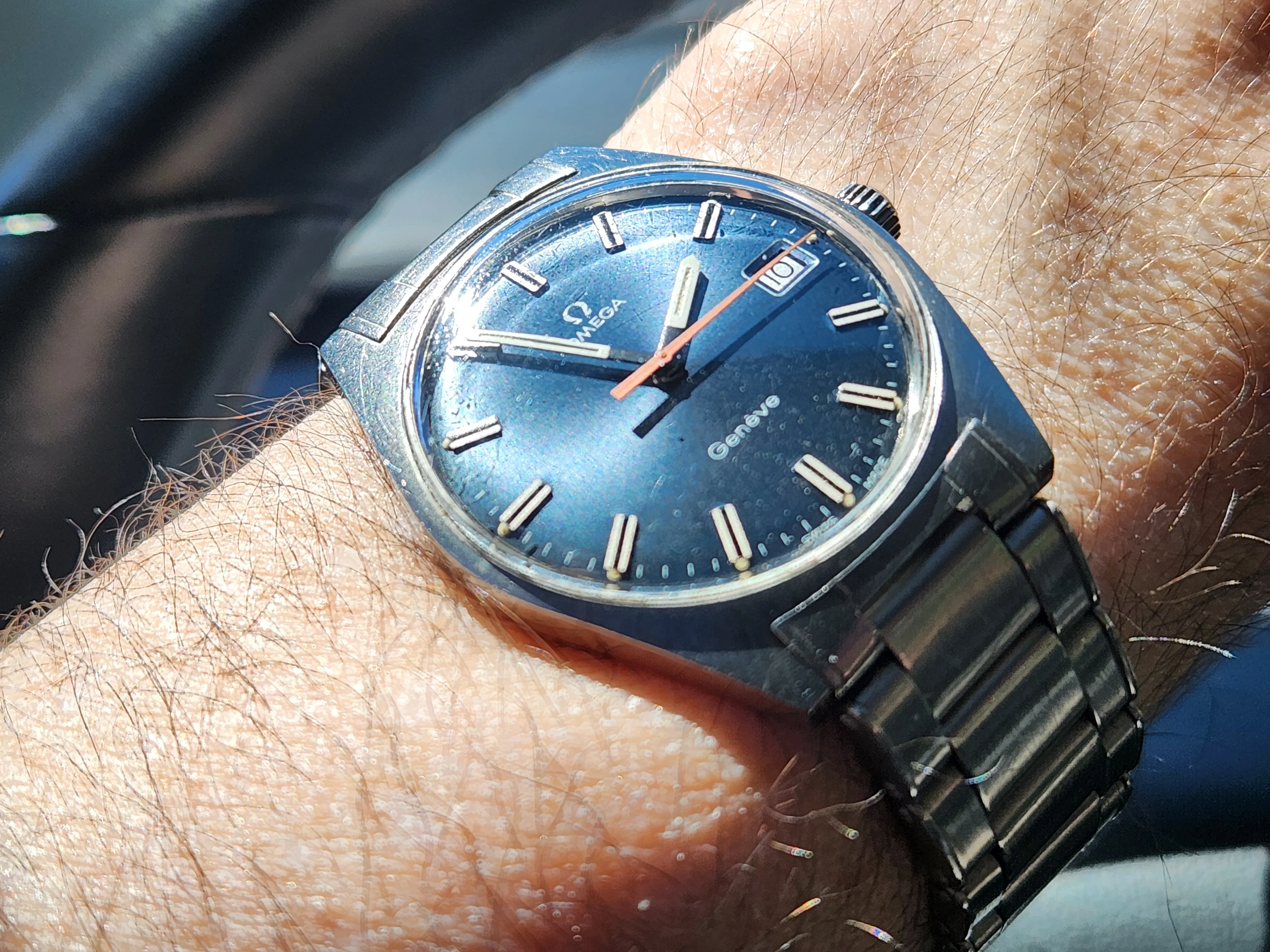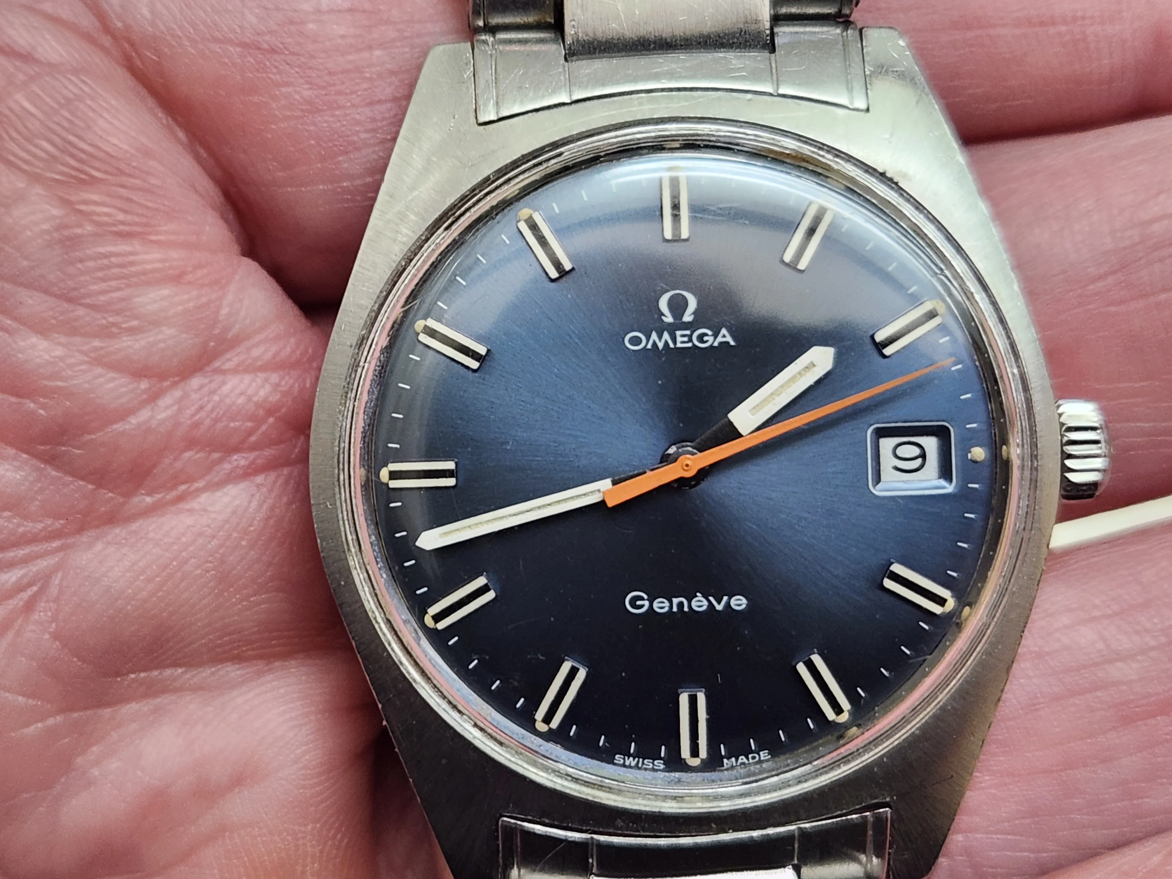 1969 Omega Geneve 136.041 Blue Dial: on bracelet, serviced and unpolished!