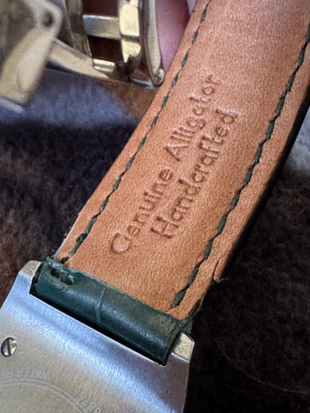 No trades please. Leave a comment before messaging. Price-385$ shipped in the USA. Zelle preferred. In good overall condition with scratches on bezel and caseback. Serviced by citizen with brand new movement and battery. Includes 2 straps original black leather and green alligator. Original box and papers. Service paperwork included.