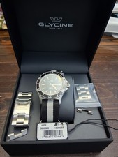 Selling this Glycine Combat to save up another watch I've had my eye on. I purchased this watch second hand last December via Chrono 24. It is in overall very good to excellent condition with no functional issues. I've tried to show all significant blemishes in the photos. The sapphire appears flawless. There are some faint scratches on the blue bezel between 11 and 1 o'clock and around 9 o'clock. There are some small blemishes on the corner of one of the lugs. The bracelet has several small scratches from where the links and clasp have rubbed on each other. Comes with outer box, inner box, documents and 4 links. The cushion and interior box material seems to be flaking. It was like that when I got it. Shipping is included in the US. Payment by PayPal or Venmo. If you use G&S, add 3%. I haven't done any transactions on here, but I have 100% feedback on ebay and a camera gear forum that I can direct you to. Happy to answer any questions via dm, email, text, call, etc. Thanks! Caliber: GL224 Swiss Automatic Case Material: Stainless Steel Back: Solid Case Back Diameter: 42 mm Waterproof: 200 m Glass: Sapphire Crown Type: Screw Down Strap/Bracelet: 22mm Stainless Steel Fold over safety