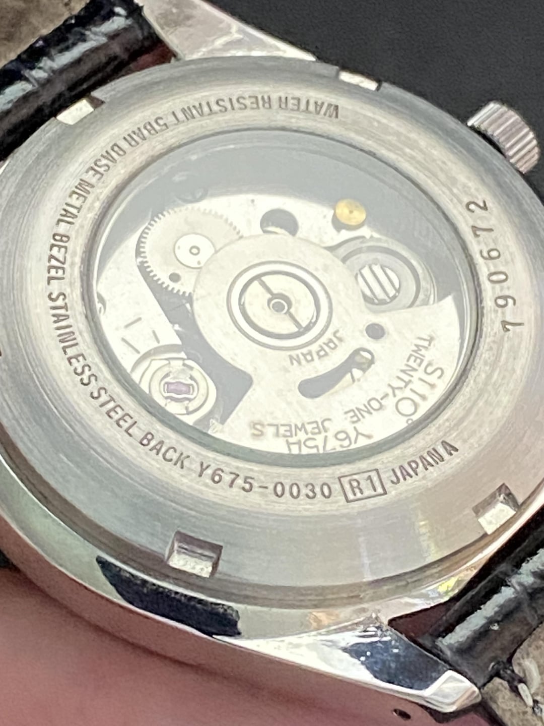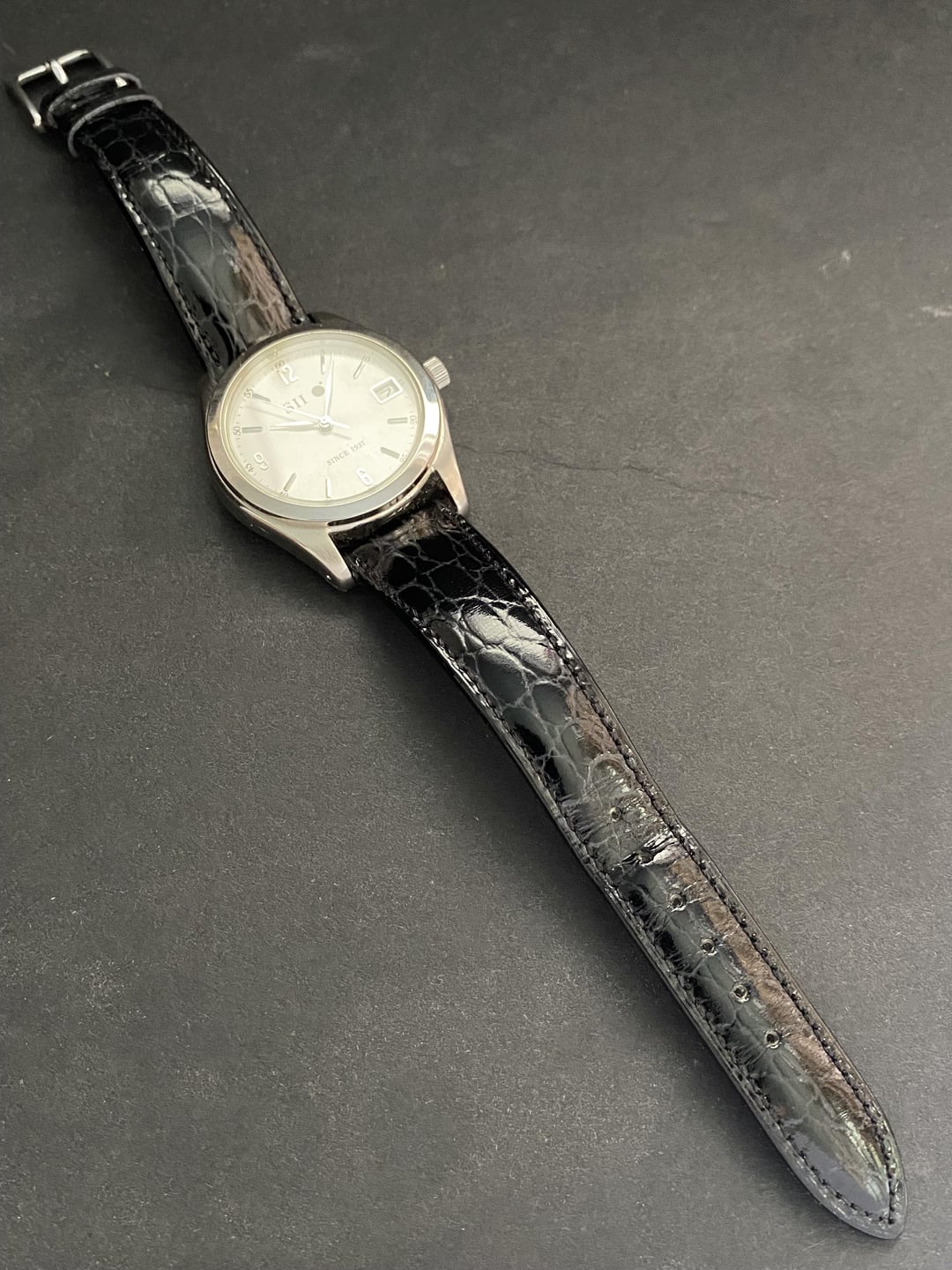 Up for sale is a rare Seiko Instruments Inc. (SII) branded automatic field watch that was not sold to the general public. These were likely built for internal use or specific OEM contracts under Seiko’s instrumentation division—not standard retail Seikos. This model runs on the Y675 automatic movement, a mechanical caliber closely related to the Seiko 7S26 family. It features a silver dial with a clean military-style layout, bold black numerals, a date window at 3, and the distinctive blue dot + "SII" branding under 12. The caseback is unbranded, consistent with OEM or non-retail Seiko variants. It’s fitted on an aftermarket black leather strap and wears comfortably thanks to its compact size and lightweight profile. Timestamp: https://imgur.com/a/6eVLrMU Price: $160 USD net to me (no trades) Brand: Seiko Instruments Inc. (SII) Model: Y675-0030 Movement: Seiko Y675 automatic (non-hacking, non-handwinding) Case: Stainless steel Dial: Silver with black hands and numerals Case Size: 34mm Thickness: 11mm Lug Width: 18mm Strap: Aftermarket black leather Box/Papers: None Condition: Good overall, running well Payment: Venmo F&F preferred, open to others Shipping: Insured via UPS, buyer pays