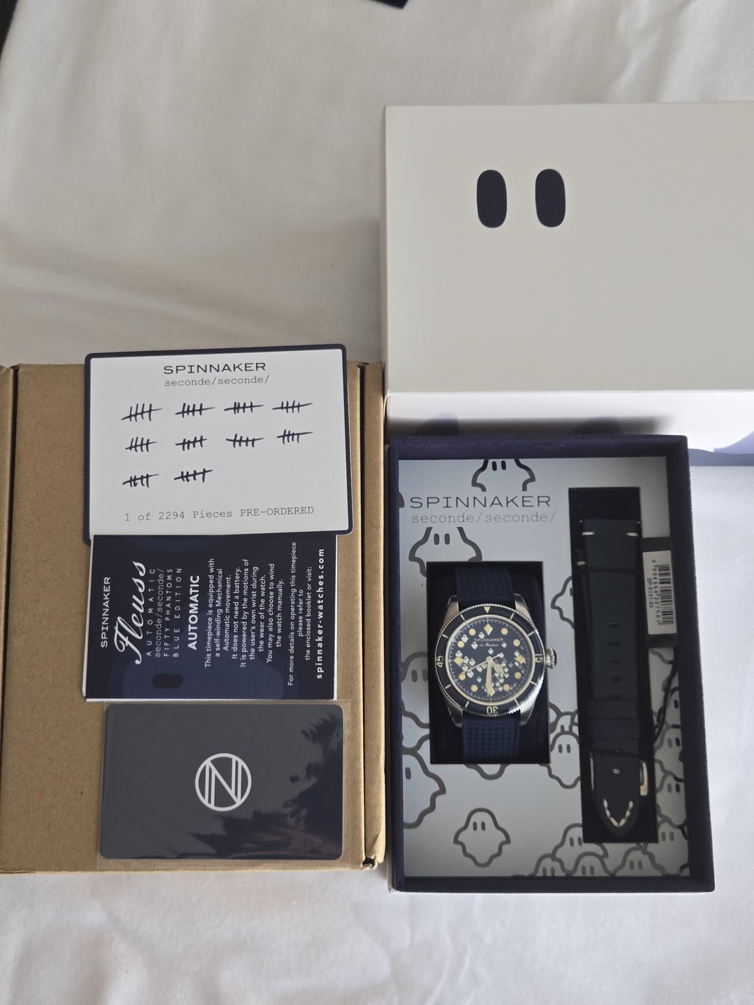 Hello Watchexchange! I’m still working on consolidating my collection. So, I’m selling my limited-edition Blue Spinnaker 50 Phantoms. For those who are not familiar, these were a limited-edition collab with seconde-seconde and feature lumed ghosts on the dial. Box, unworn leather strap, and warranty card included. $529 shipped fully insured CONUS. It’s been worn a few times, so it looks practically new. Timestamp: [https://imgur.com/a/eUMh0JJ](https://imgur.com/a/eUMh0JJ) Payment: Zelle or Paypal FF only In-person delivery possible in Los Angeles.