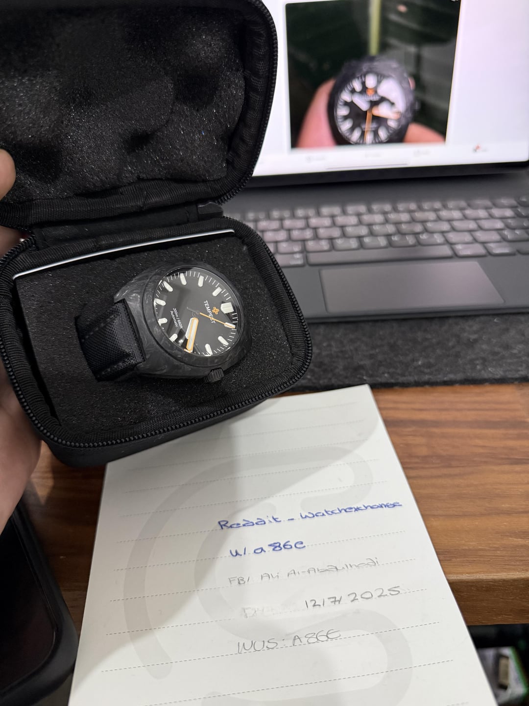 Greeting all Up for sale is the Tempest Forged Carbon Quick specs for those that never heard or seen it Case: Forged Carbon Movement: Miyota 9015 Dial: Black Lume: BGW9 Lens: Sapphire Strap: Nylon Water Res.: 200m Dimensions: 43 x 47.25 mm Thickness: 14.75 mm Lug Width: 22 mm Crown: 7.5 x 4mm screwdown Asking price: $600 shipped TYD, from Kuwait via Fedex Fairly priced No trades Please read the disclaimer before shooting a PM Thanks ⸻ Watch Sale Disclaimer: • I am a private collector, not a store or reseller, and I am not affiliated with any watch brand mentioned in this listing. • The watch will be shipped from Kuwait via FedEx, and a tracking number will be provided to the buyer once dispatched. • Buyer is responsible for any customs duties, VAT, or import taxes that may be charged upon delivery, depending on your country’s regulations. • I welcome all reasonable requests for additional information, including more photos and/or videos to verify the watch and its condition. • Payment terms: • Established Watchexchange members with verifiable feedback may pay via PayPal Goods & Services only, I do not accept Friends & Family nor Zelle • New or low-feedback users must pay via wire transfer. All watches are sold as-is, with details described to the best of my knowledge. Serious inquiries only, please. Thanks for looking