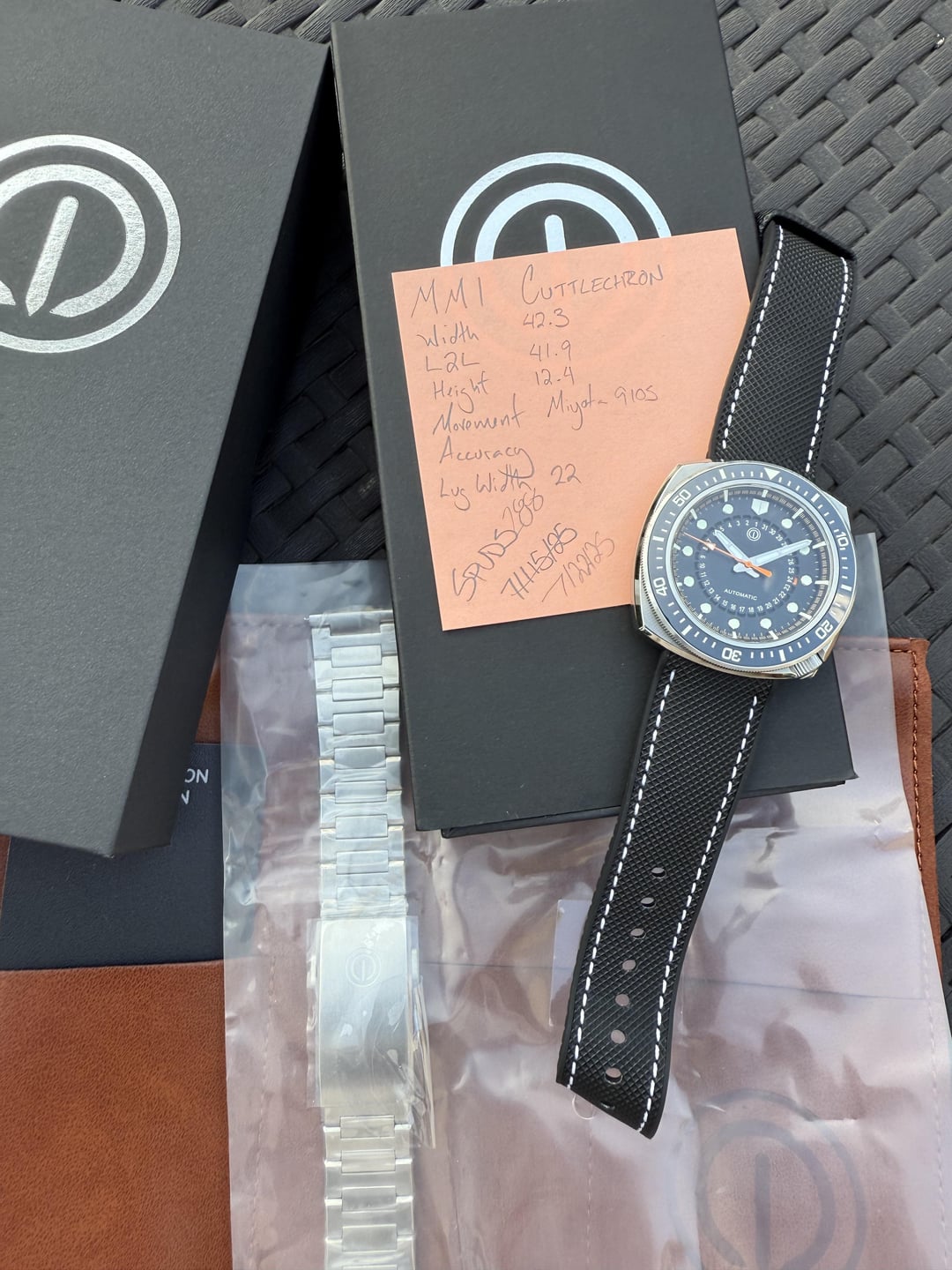 First time seller here. eBay references since 2007, WUS since 2012, instagram since 2014, etc. I’m happy to talk watches and have no problem providing references. It is a hobby for me but I do take selling/buying seriously. With that out of the way, I have let the “don’t wear” pile get a little too large. All these watches are complete sets with boxes, papers, straps. Most of these have only been worn a handful of times, practically new. Sticky note has my own measurements and I’ll update movement accuracy after 24hours dial up (no timeographer). MMI $450 - just got this, pretty sure it was the last black they assembled in May 2025. Absolutely love what this watch is doing but I will never wear it. Strap covers from marks on back of lugs, it’s a tight fit for a strap. Basically new. All prices include shipping to the US. I’m experienced shipping outside the US and I’m open to doing so, but please be prepared with references of your own. I prefer PayPal goods and services. I think the prices are competitive. If you’d like a deal, and feel comfortable with PayPal f&f, I’m open to negotiate slightly.
